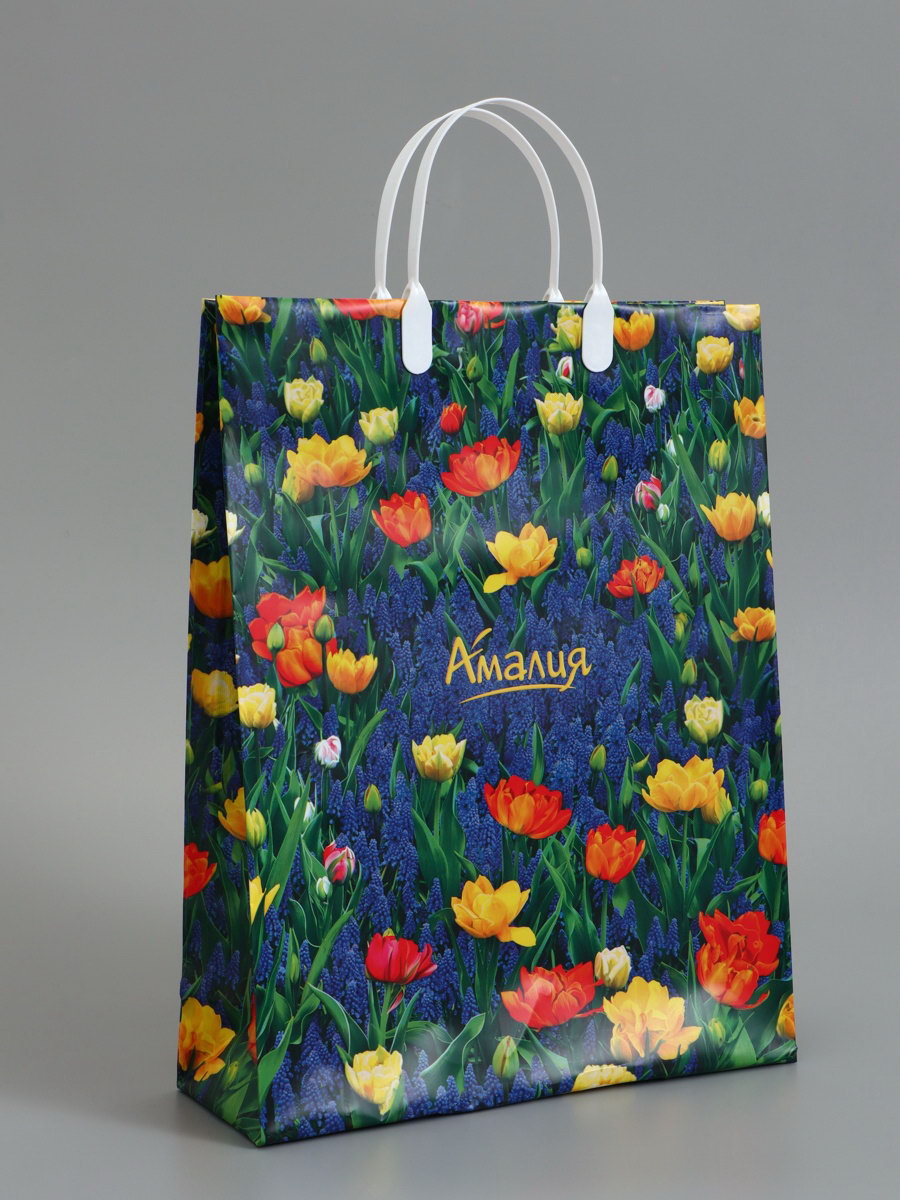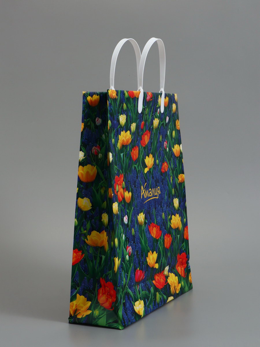 Для цветочных магазинов, косметических бутиков и крупных подарков "Амалия" решает задачу красивой и надёжной упаковки для габаритных женских подарков. Берите такой пакет для вручения букета в коробке, набора постельного белья, парфюма в подарочной упаковке или сладкого презента большого размера. Зелёный и синий фон не маркий, цветочный рисунок не стирается от контакта с влагой. Пакет легко сложить и хранить в запасе пригодится для спонтанного поздравления коллеги, мамы или подруги. | ||