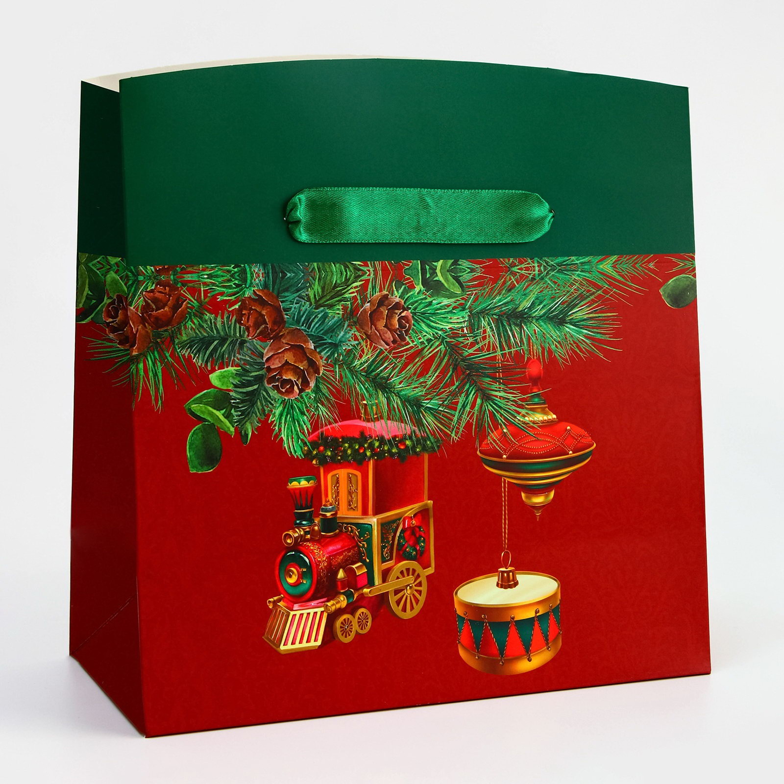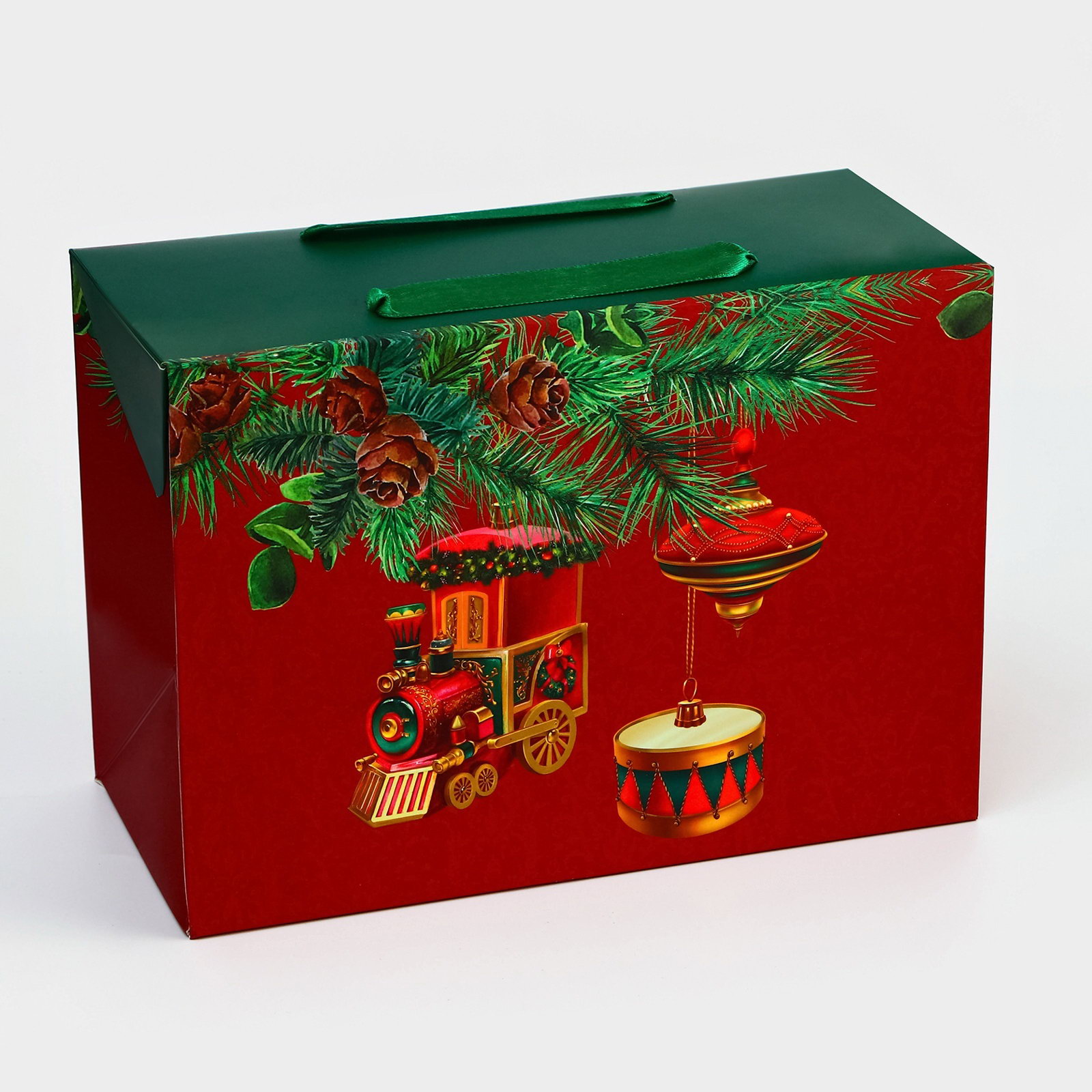 Сумка-коробка подарочная новогодняя "Паровозик", 23 x 16 x 11 см, Китай