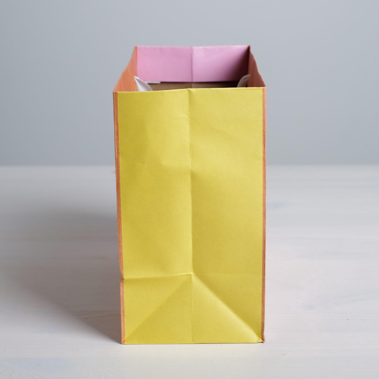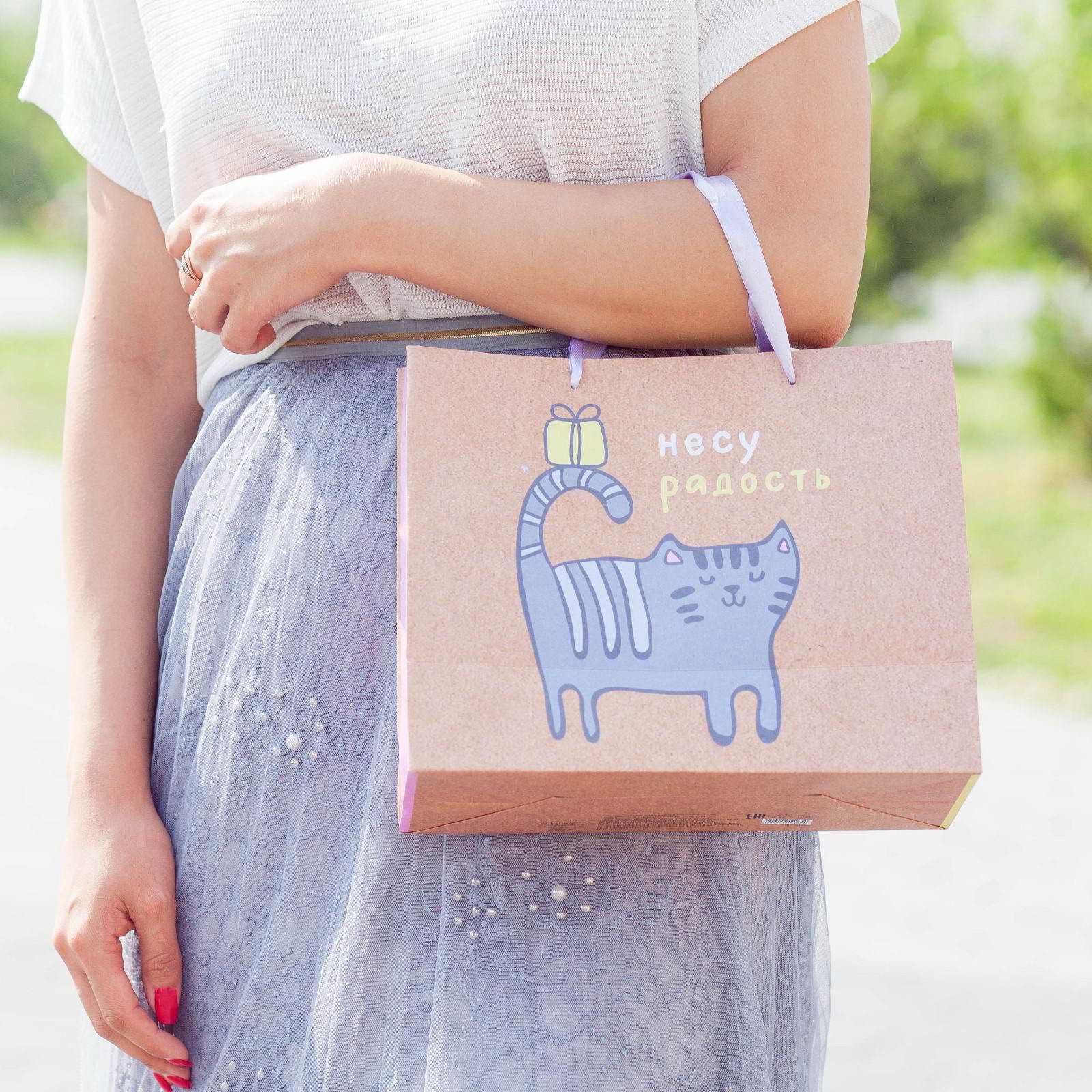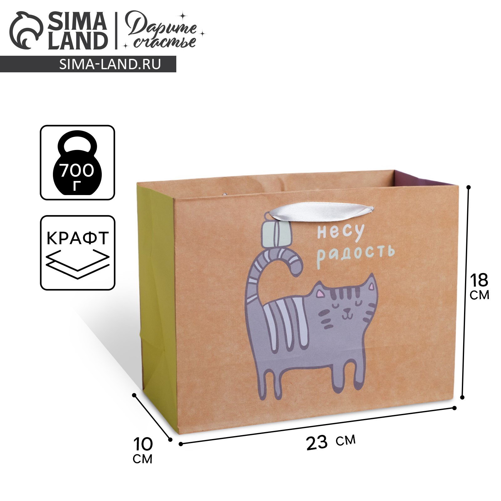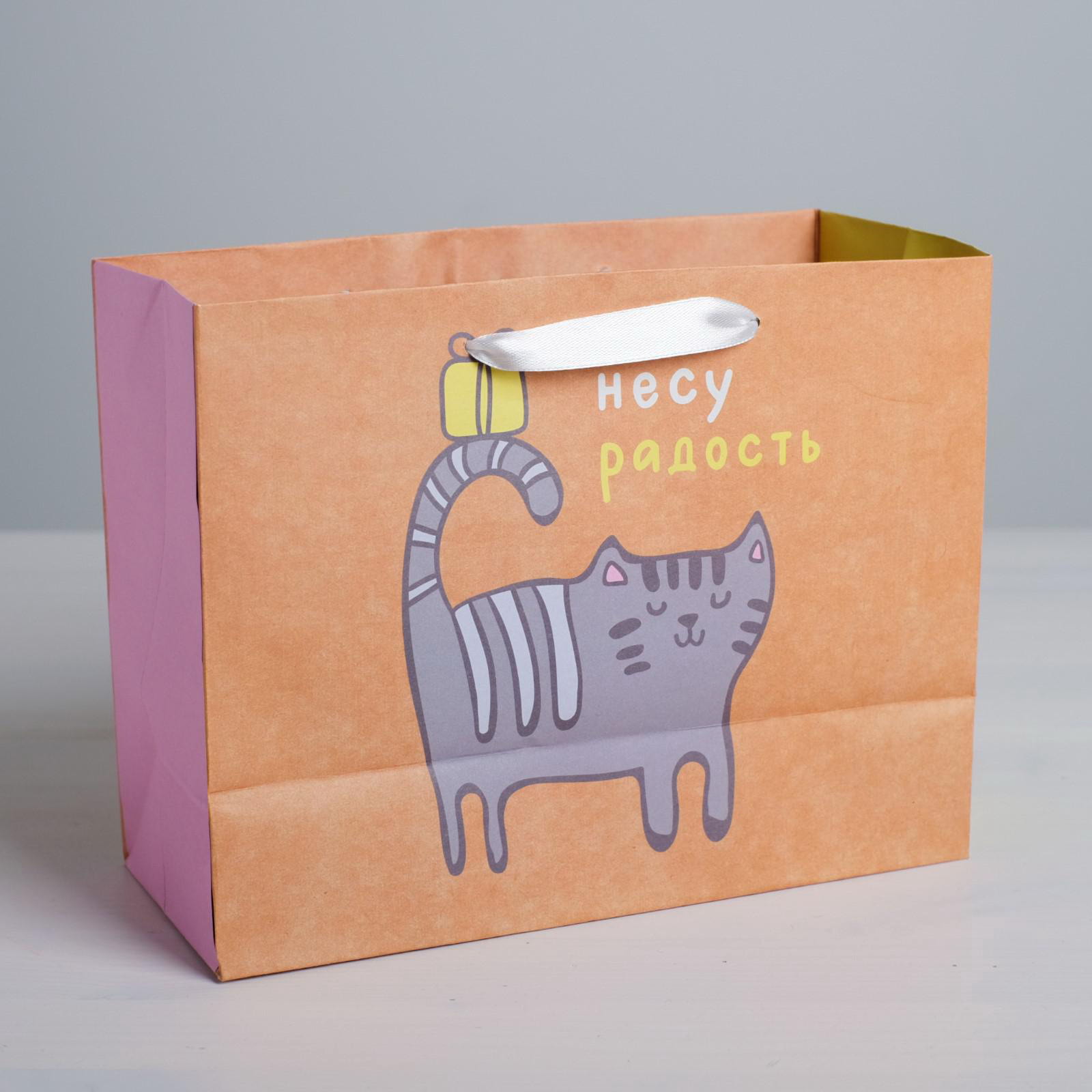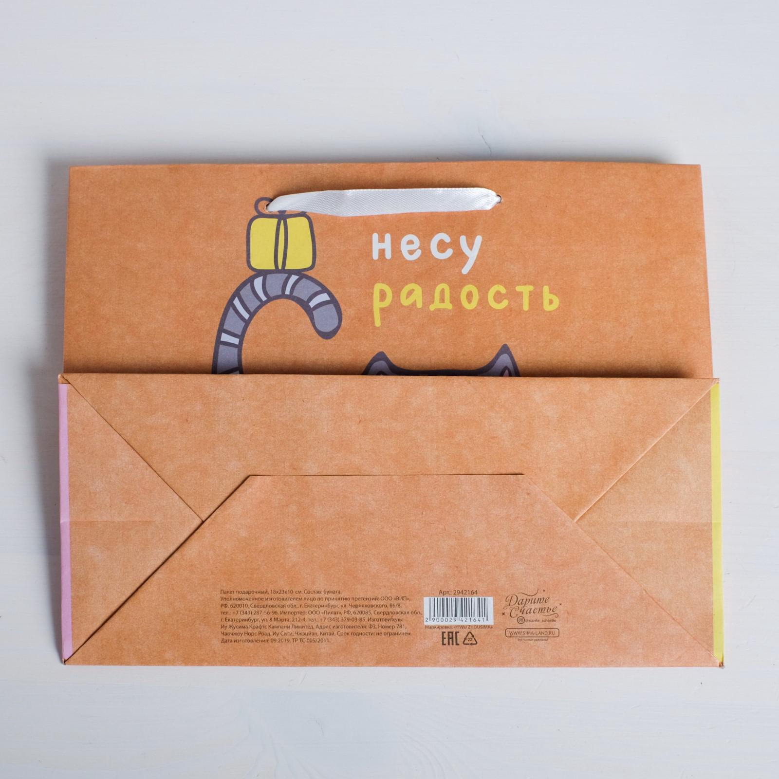 Пакет подарочный крафтовый горизонтальный, упаковка, "Несу радость", MS 18 x 23 x 10 см, 10x18x23 см., Дарите Счастье, Китай