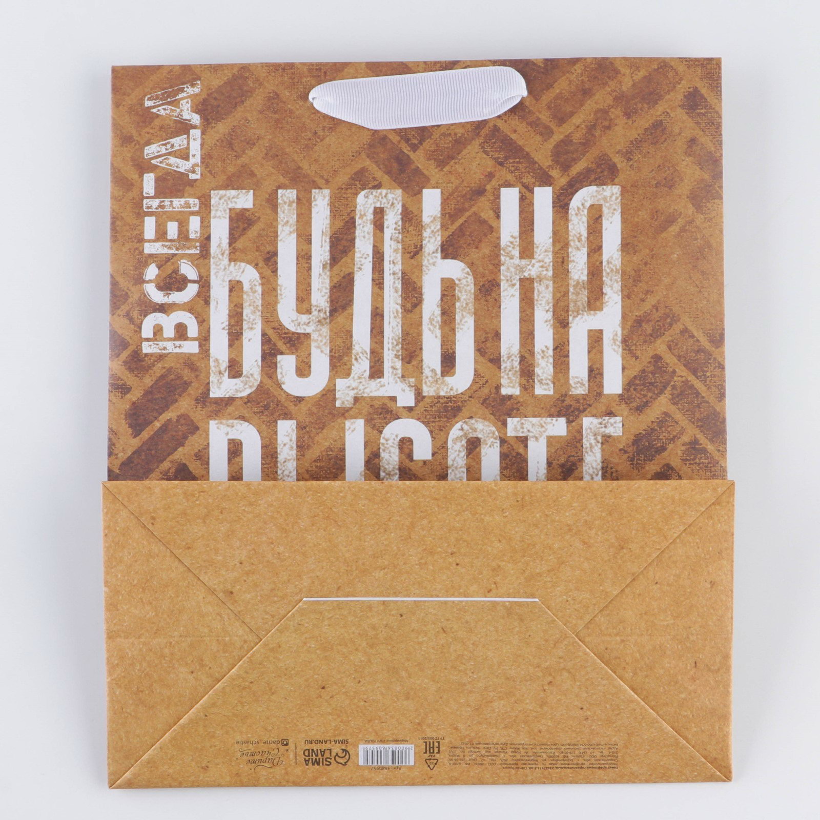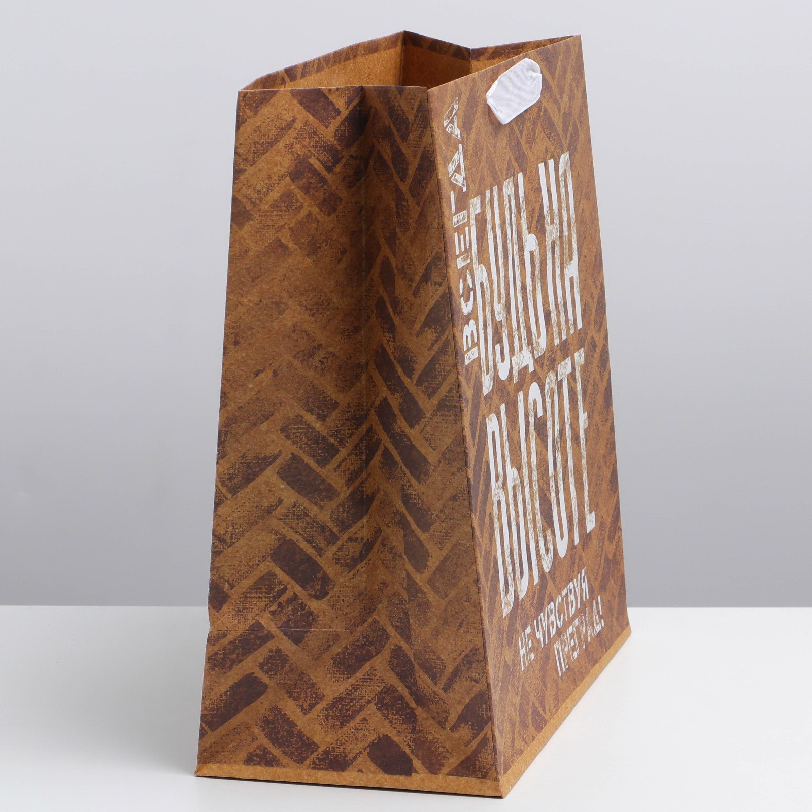 Пакет крафтовый вертикальный "Не чувствуй преград!", ML 23 x 27 x 11.5 см, 23x8x27 см., Дарите Счастье, Китай