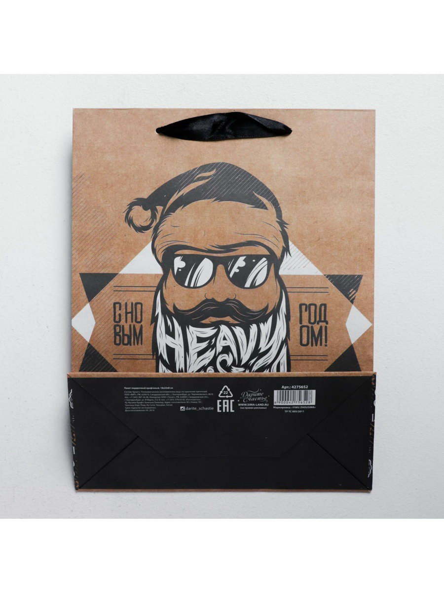 Пакет подарочный новогодний крафтовый "Брутального года", MS 18 x 23 x 8 см, 10x18x23 см., Дарите Счастье, Китай