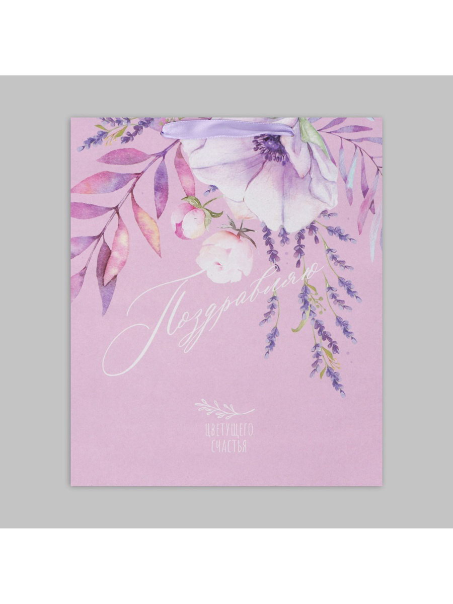 Пакет подарочный крафтовый, упаковка, "Поздравляю", M 26 x 30 x 9 см, 9x26x30 см., Дарите Счастье, Китай