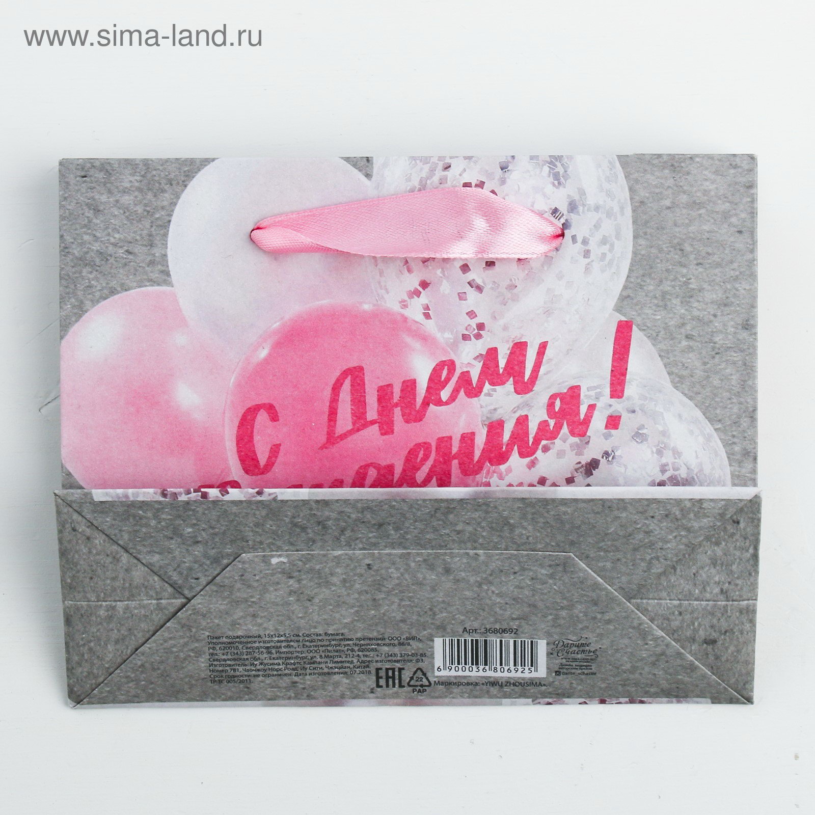 Тематика: Надписи, цифры, буквы, Праздник, Шары Размер упаковки: 12 x 0.3 x 15 см. tnved: 4819400000 Примерный размер: S (~ 12см x 16см) Тематика праздника: День рождения Вид ручки: Ручка-лента Отделка пакета: Крафт Плотность, г/?2: 150 Цвет: Серый Допустимый вес вложения, г: 500 | ||