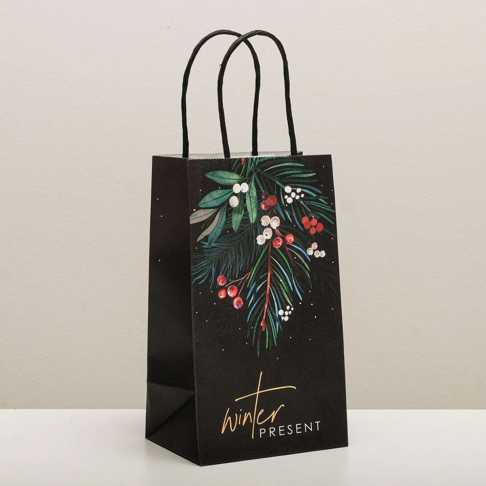 Пакет подарочный крафтовый "Еловая веточка", 12 x 21 x 9 см, 21x12x9 см., Дарите Счастье, Китай