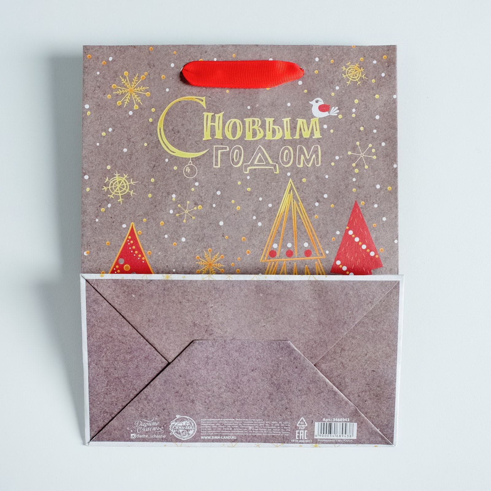 Пакет подарочный новогодний крафтовый "Новогодние ёлки", 18x23x8 см, 10x18x23 см., Дарите Счастье, Китай