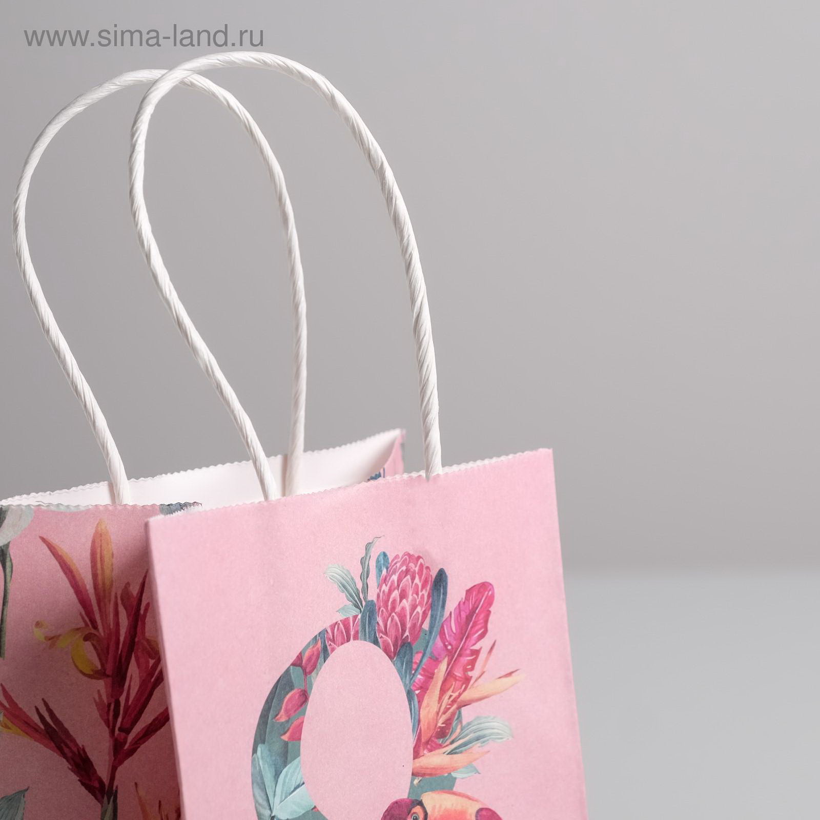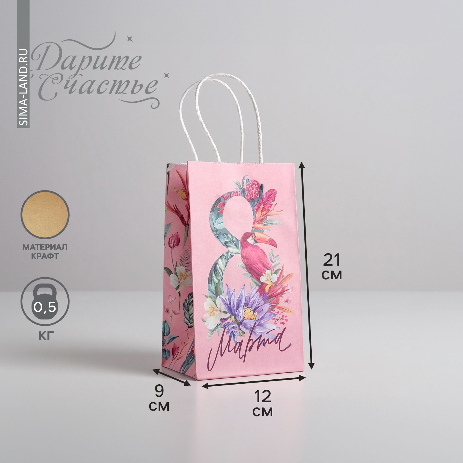 Пакет подарочный крафт, упаковка, "Тропикана", 12 x 21 x 9 см, 9x12x21 см., Дарите Счастье, Китай