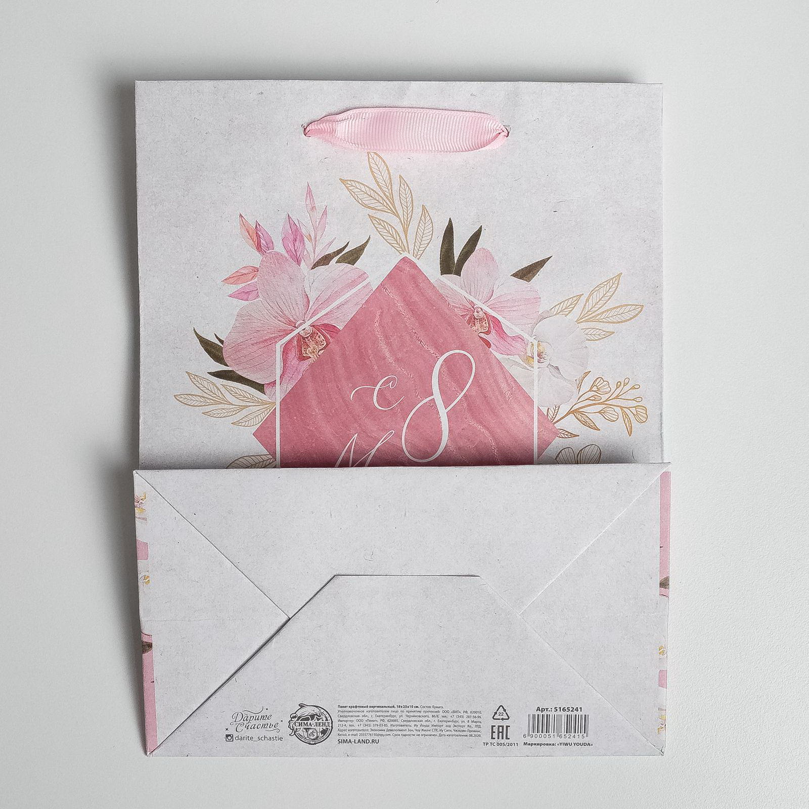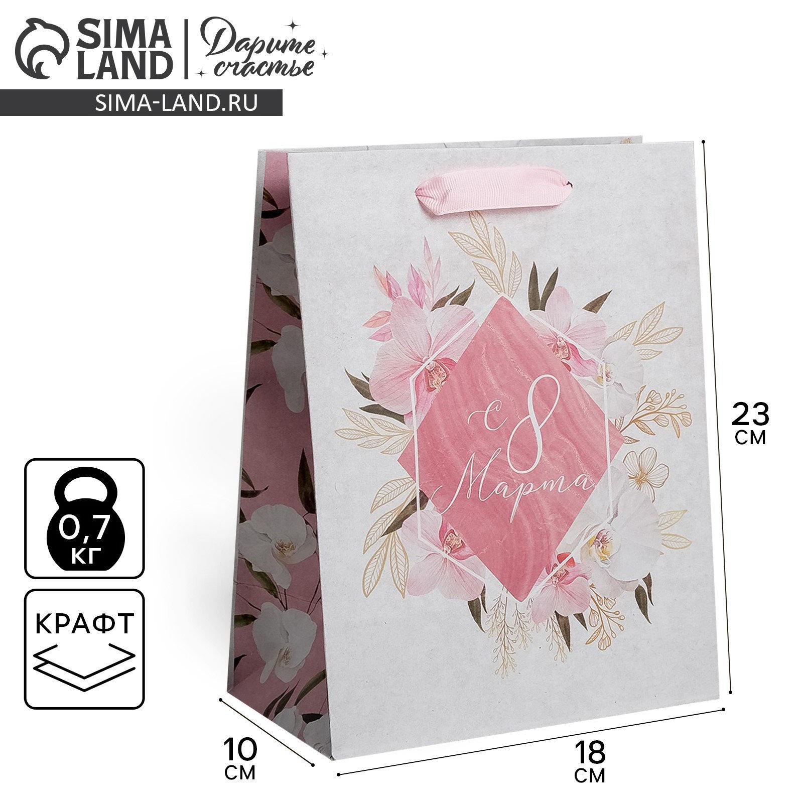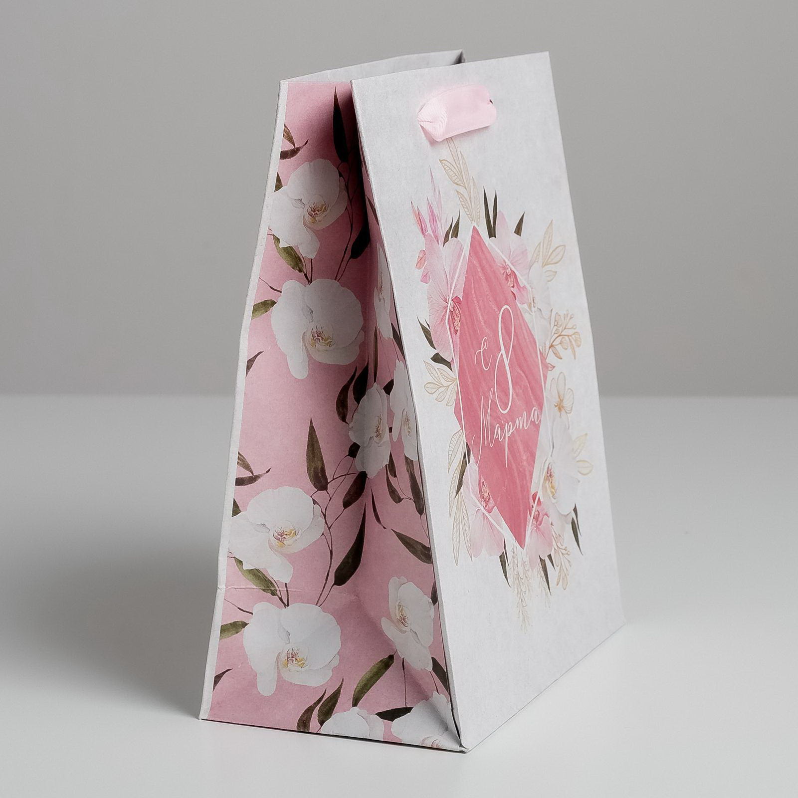 Пакет подарочный крафтовый вертикальный, упаковка, "8 марта", MS 18x23x10 см, 10x18x23 см., Дарите Счастье, Китай