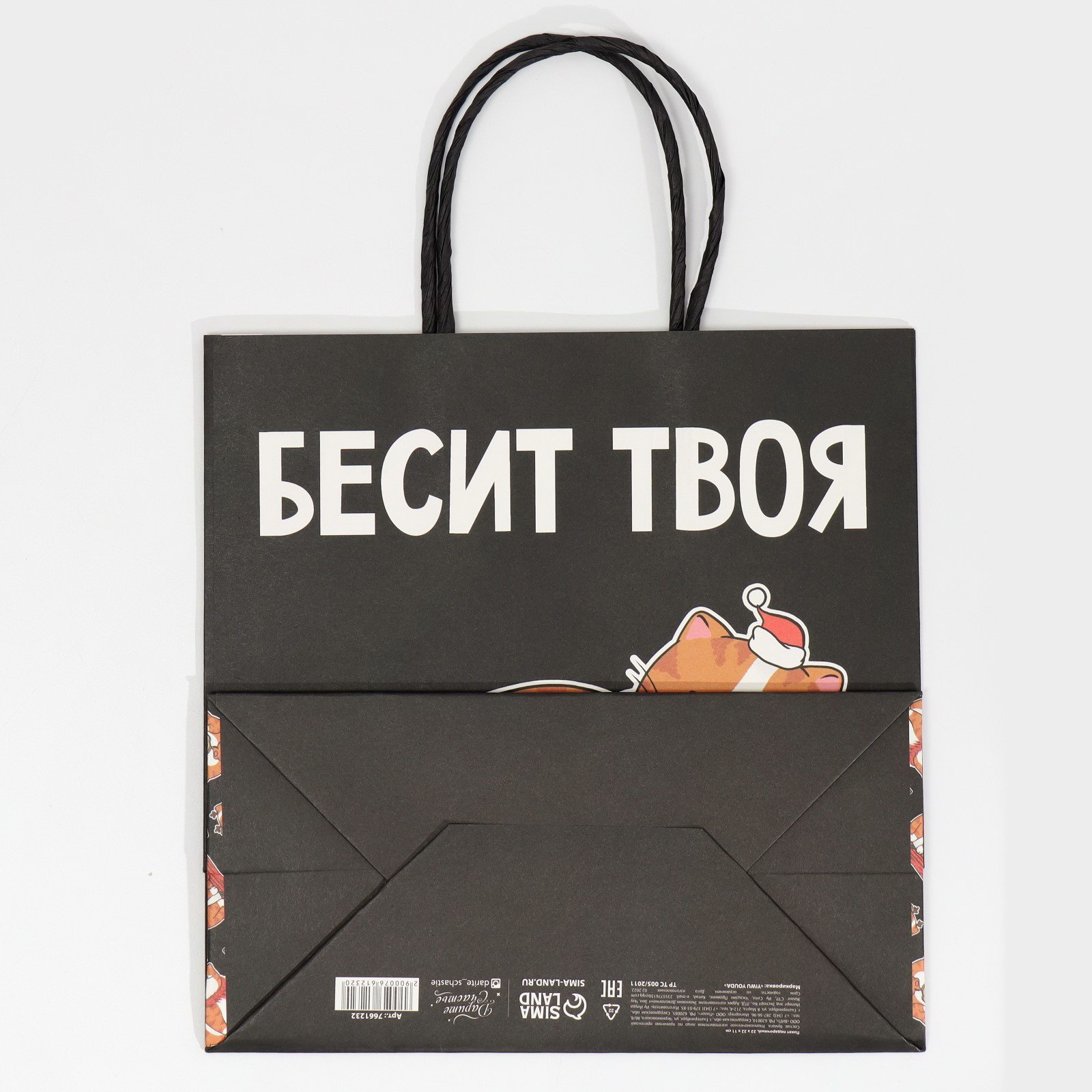 Цвет: Бежевый, Чёрный Тематика: Животный мир, Новогодняя, Приколы Размер упаковки: 22 x 0.2 x 22 см. tnved: 4819400000 Дизайн: С рисунком, надписью Для кого: Унисекс Примерный размер: M (~ 17см x 23см) Тематика праздника: Новый год Вид ручки: Крученый шпагат Плотность, г/?2: 150 Особенности: Без особенностей Отделка пакета: Крафт Допустимый вес вложения, г: 1000 Символ года: Нет | ||