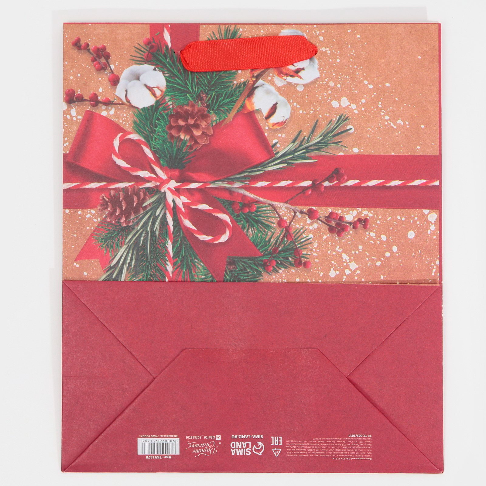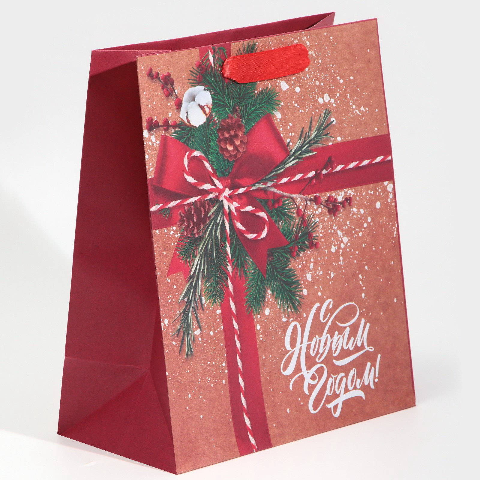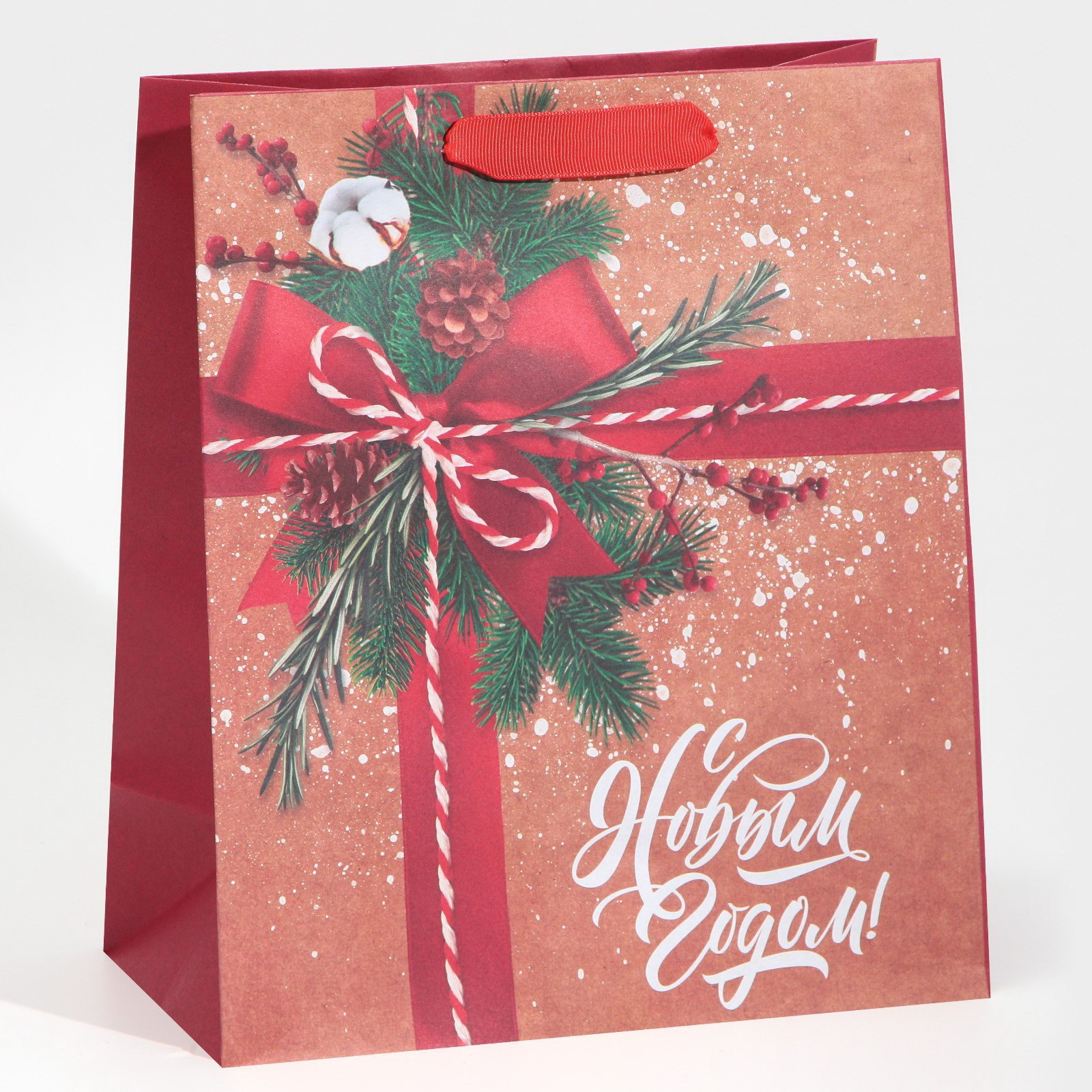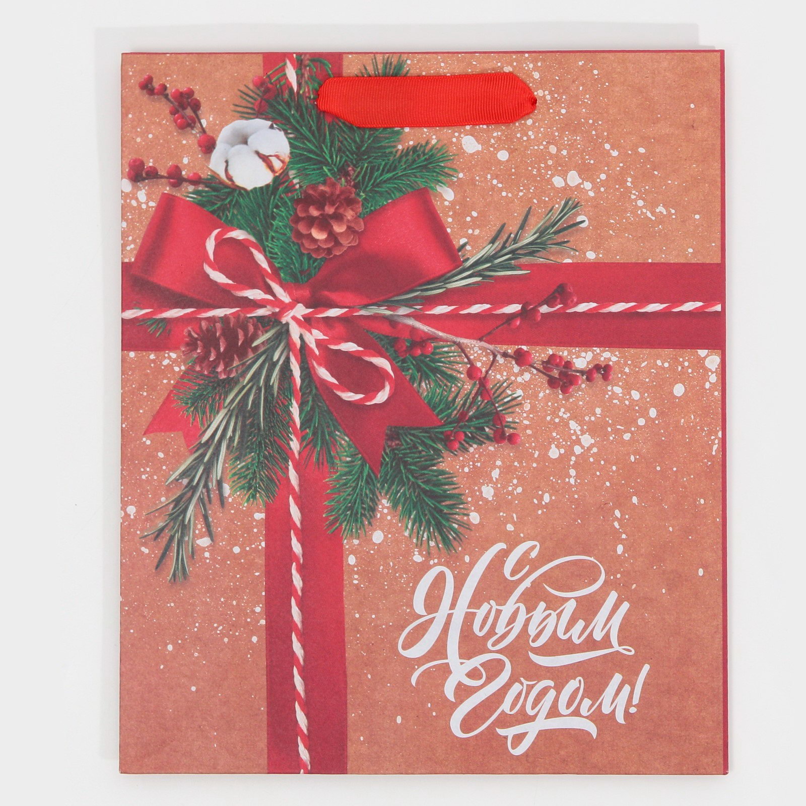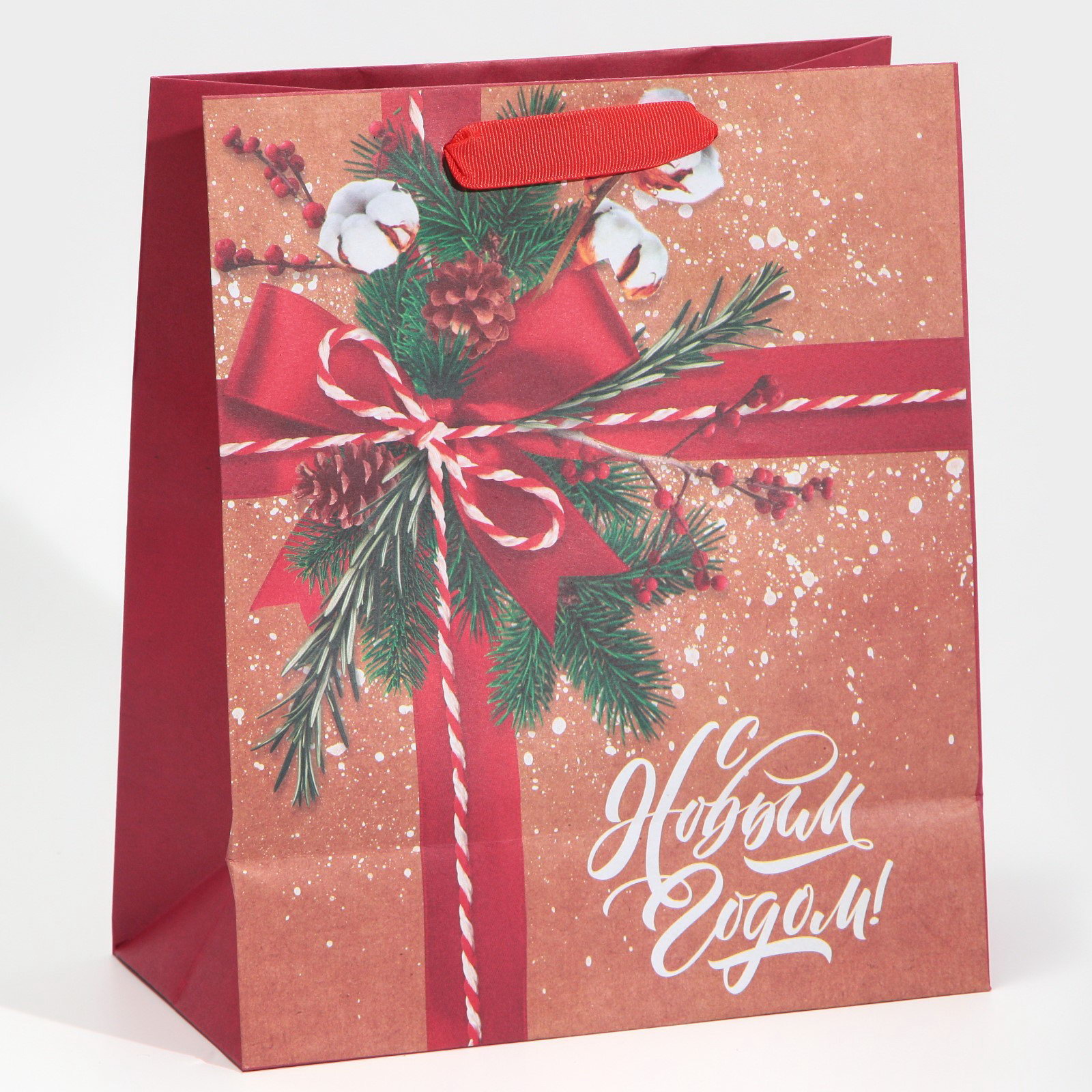 Пакет подарочный новогодний крафтовый вертикальный "Подарок для тебя", ML 23x27x11.5 см, 11.5x27x23 см., Дарите Счастье, Китай