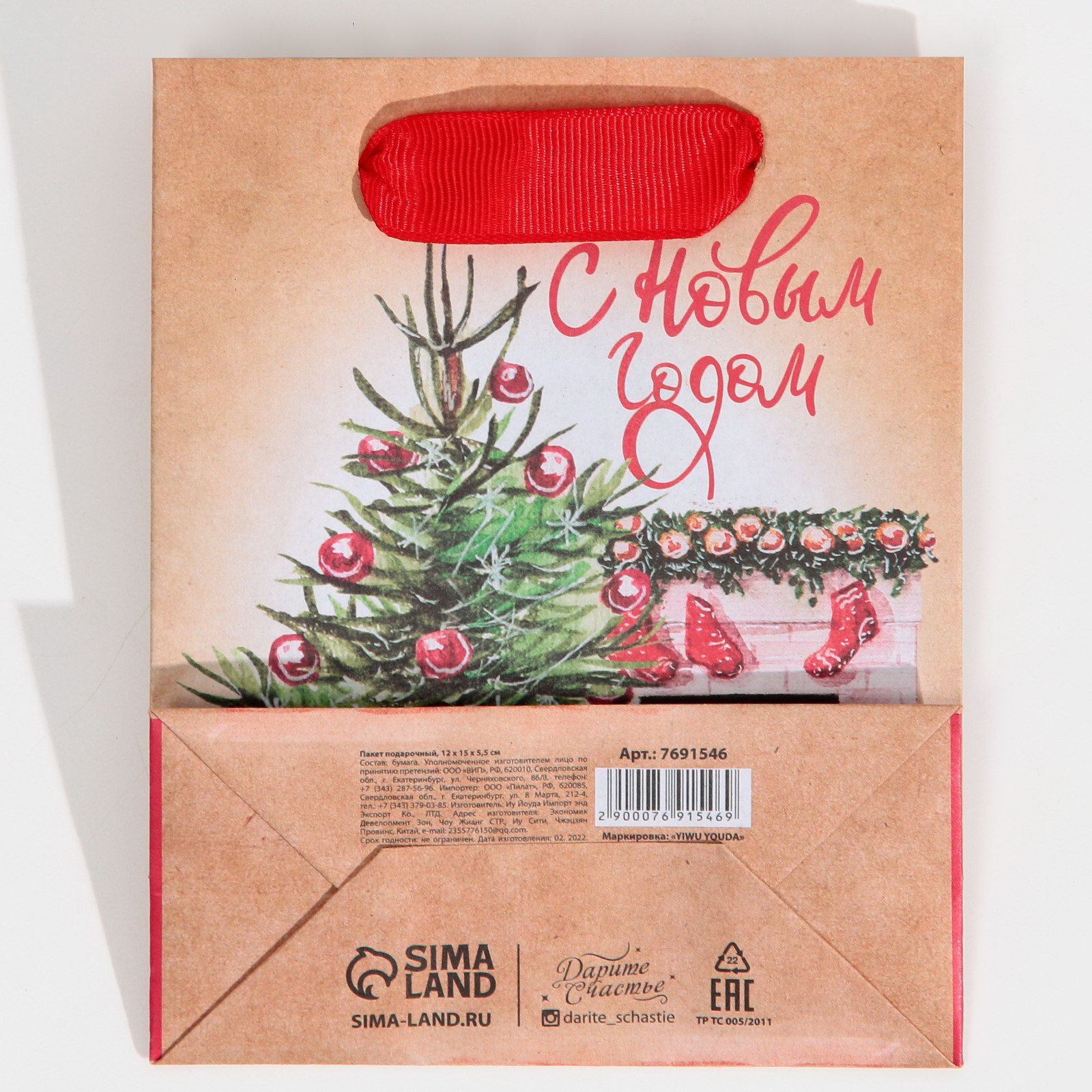Пакет подарочный новогодний крафтовый "Вечер у камина", S 12x15x5.5 см, 5.5x12x15 см., Дарите Счастье, Китай