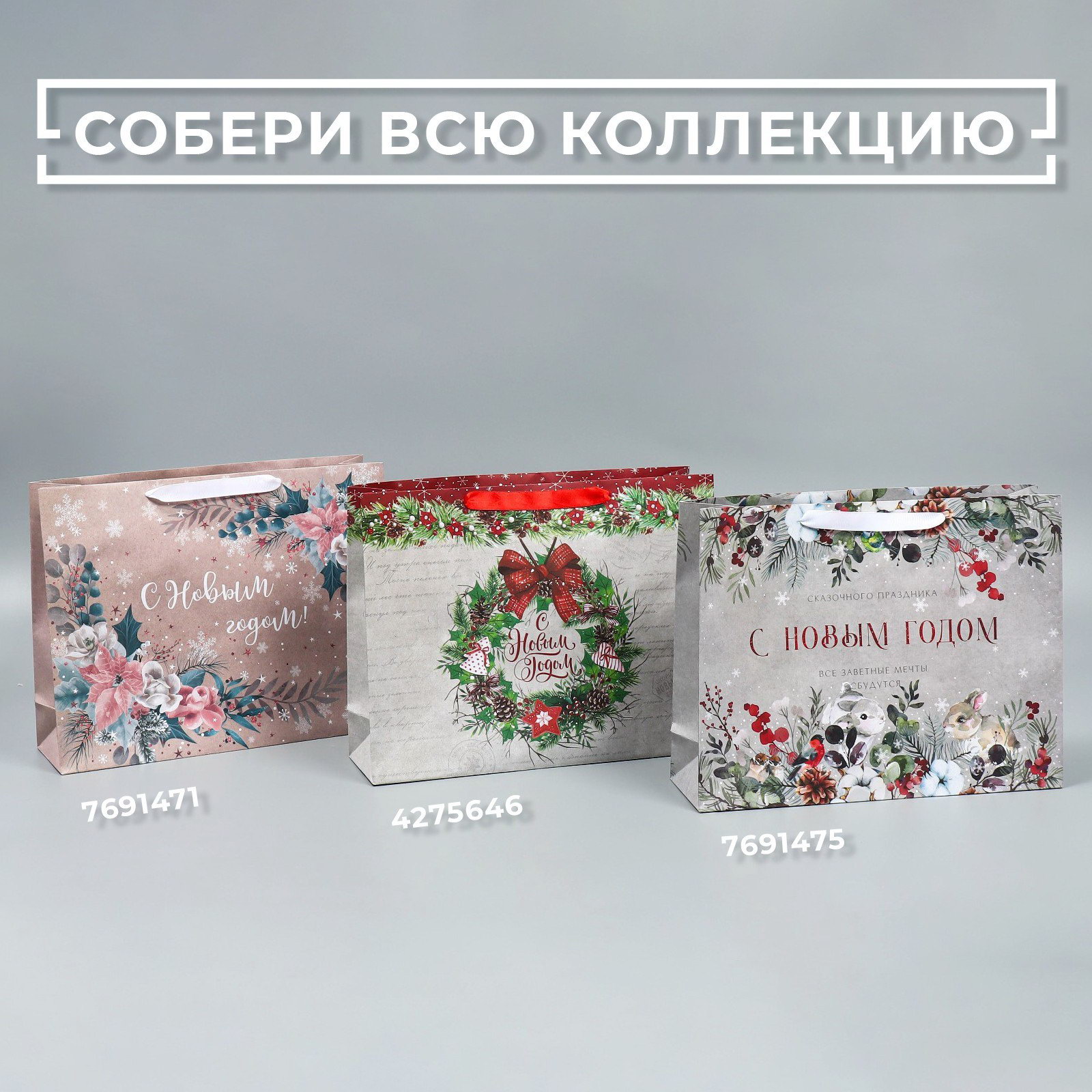 Пакет подарочный новогодний крафтовый "Заветные мечты", L 40 x 31 x 11.5 см, 11.5x40x31 см., Дарите Счастье, Китай