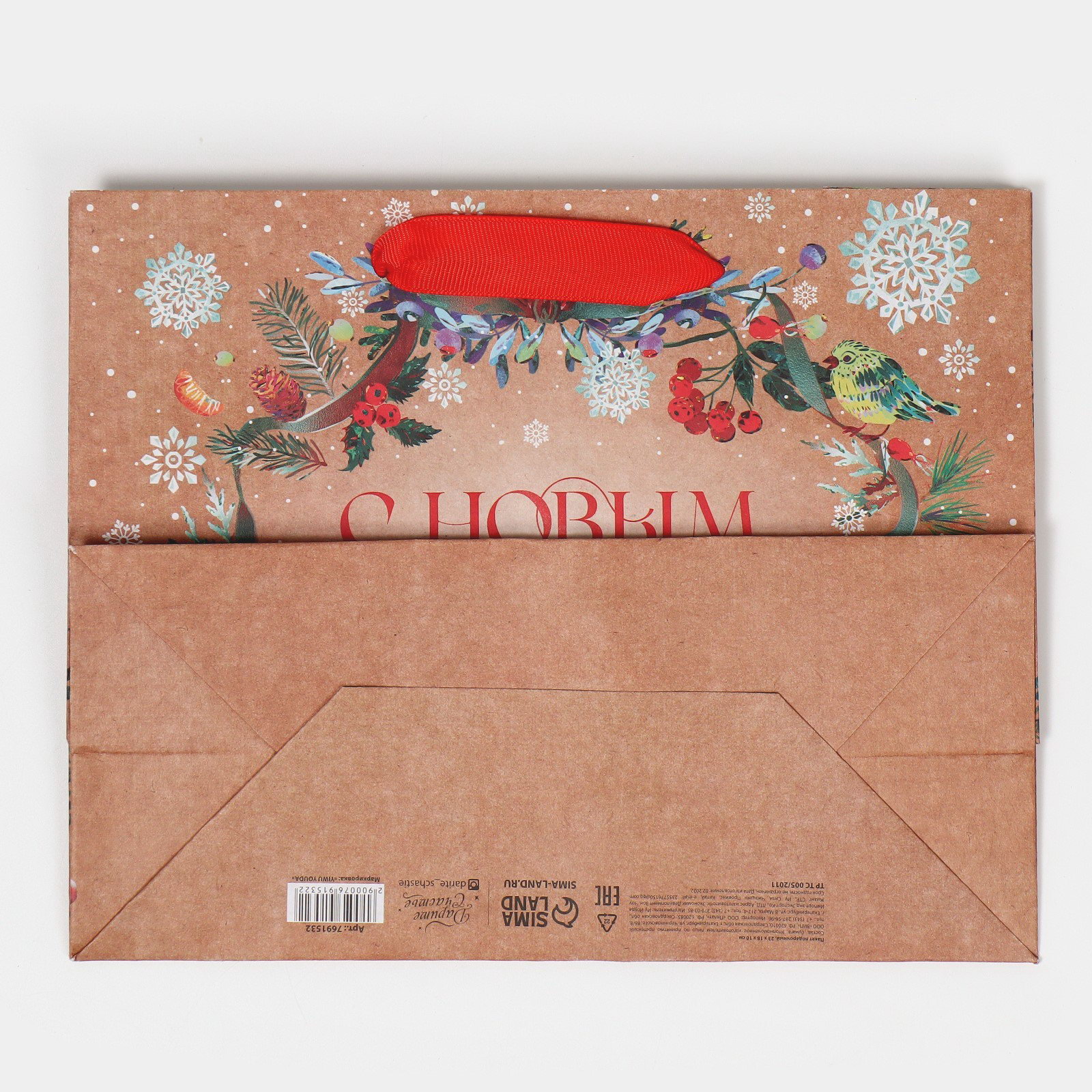Пакет подарочный новогодний крафтовый "Новогоднее чудо", MS 23x18x10 см, 10x23x18 см., Дарите Счастье, Китай