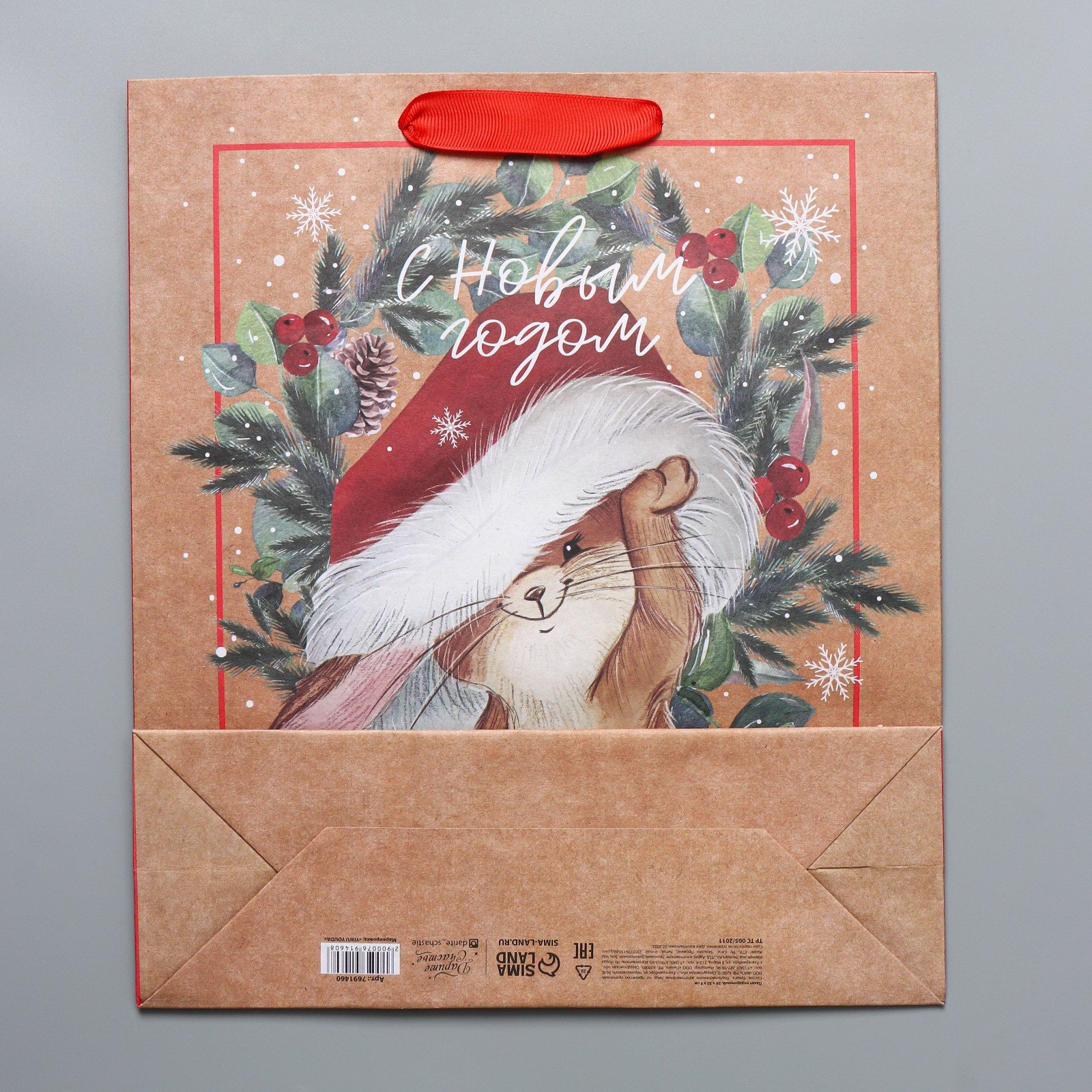 Пакет подарочный новогодний крафтовый "Новогодняя пора", M 26 x 30 x 9 см, 9x26x30 см., Дарите Счастье, Китай