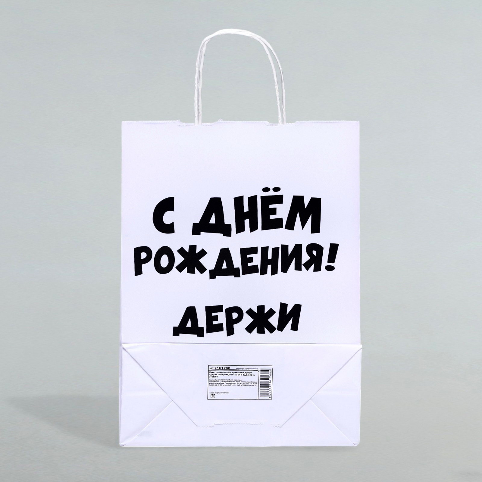 Пакет подарочный с приколами, крафт "Держи подарок", белый, 24x14x28 см, UPAK LAND, Россия