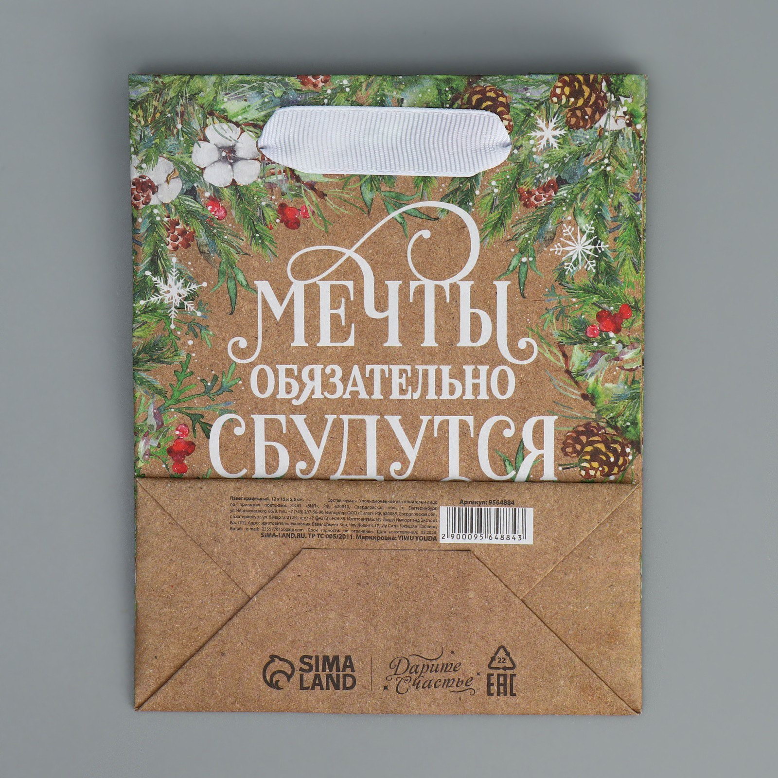 Пакет подарочный новогодний крафтовый "Пусть мечты сбудутся", S 12x15x5.5 см, 5.5x12x15 см., Дарите Счастье, Китай