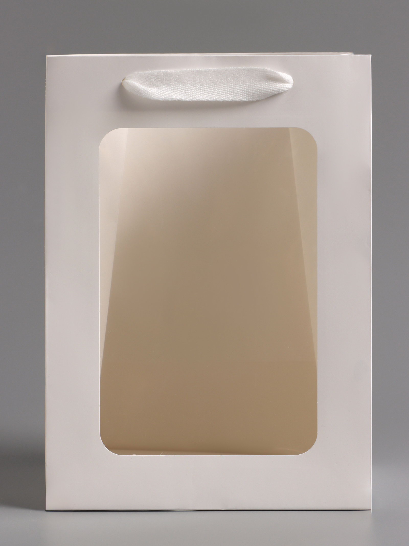 Пакет подарочный, с окном, 25x18x13 см, белый, 18x25x13 см., UPAK LAND, Китай