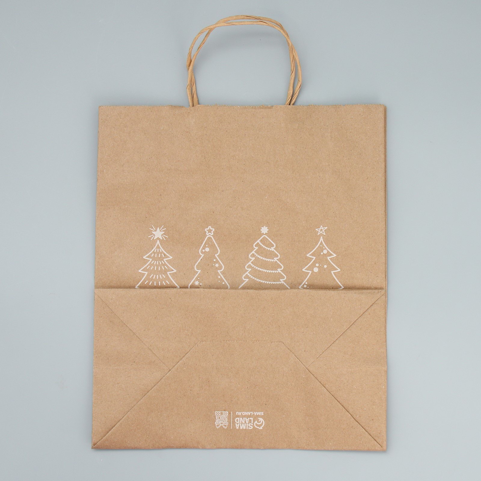 Пакет подарочный новогодний крафтовый "Счастливого Нового года", 24 x 28 x 14 см, Доступные Радости, РОССИЯ