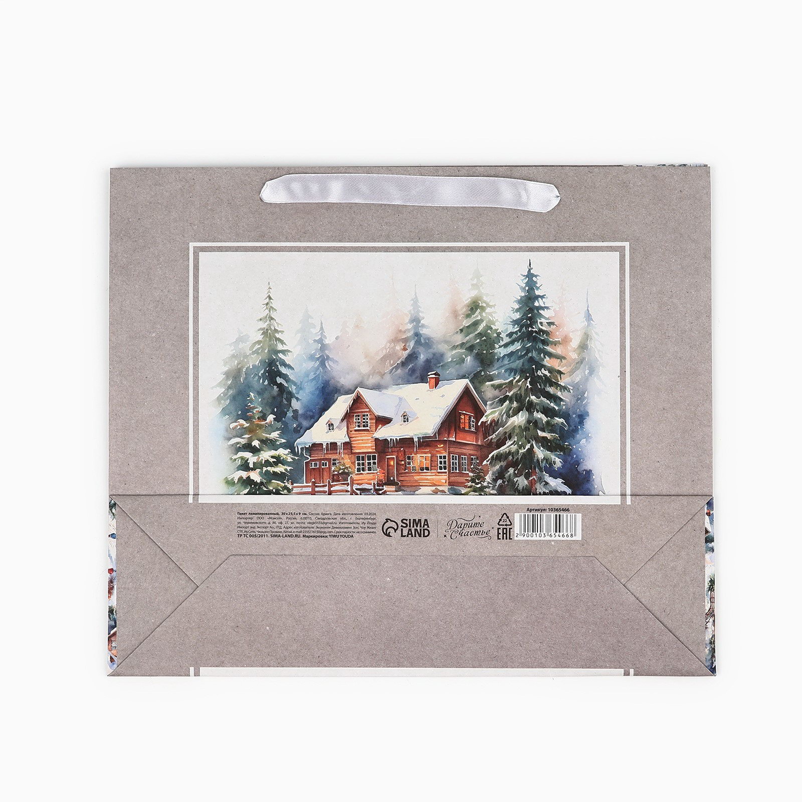 Пакет подарочный новогодний крафтовый "Зимний лес", M 26x30x9 см, 9x26x30 см., Дарите Счастье, Китай