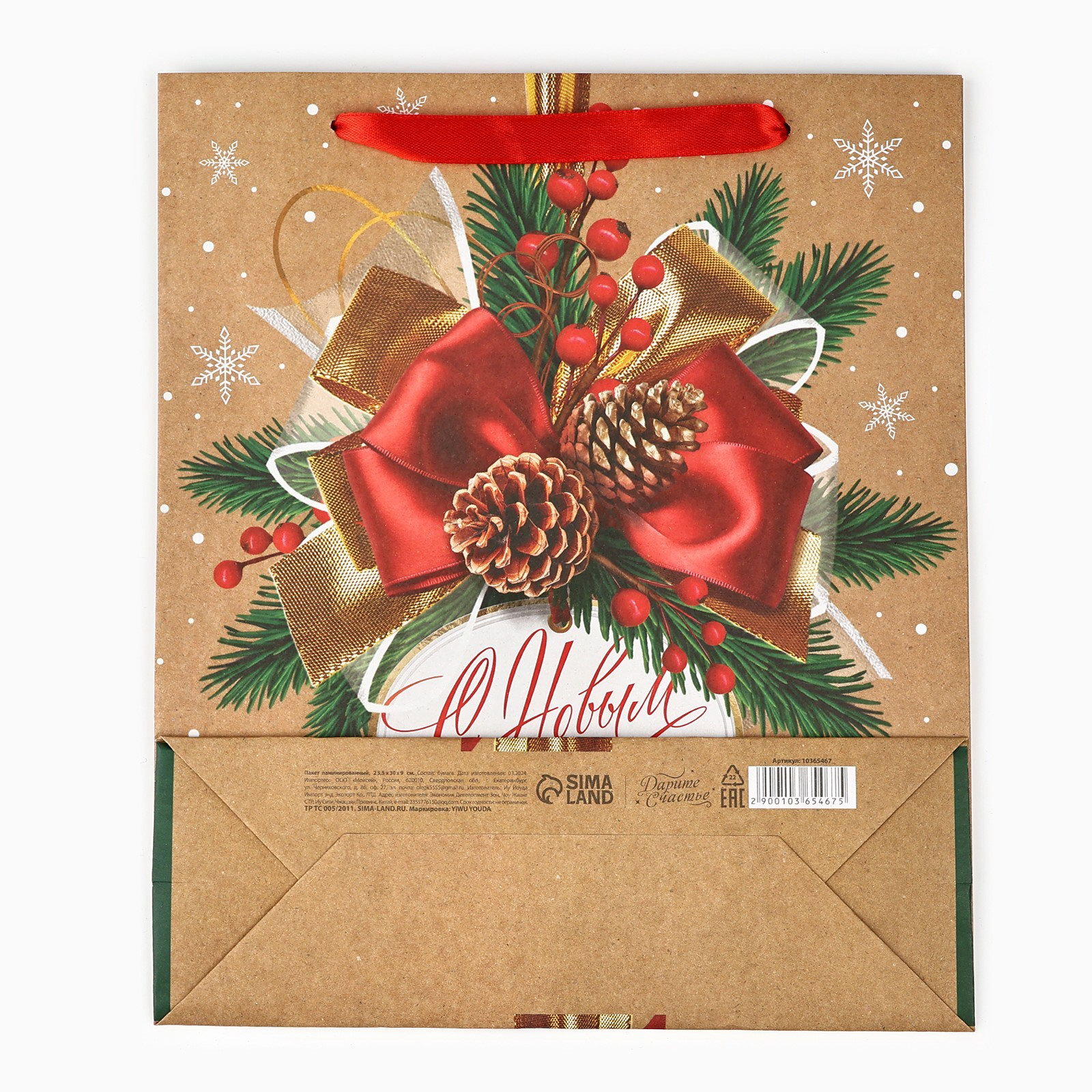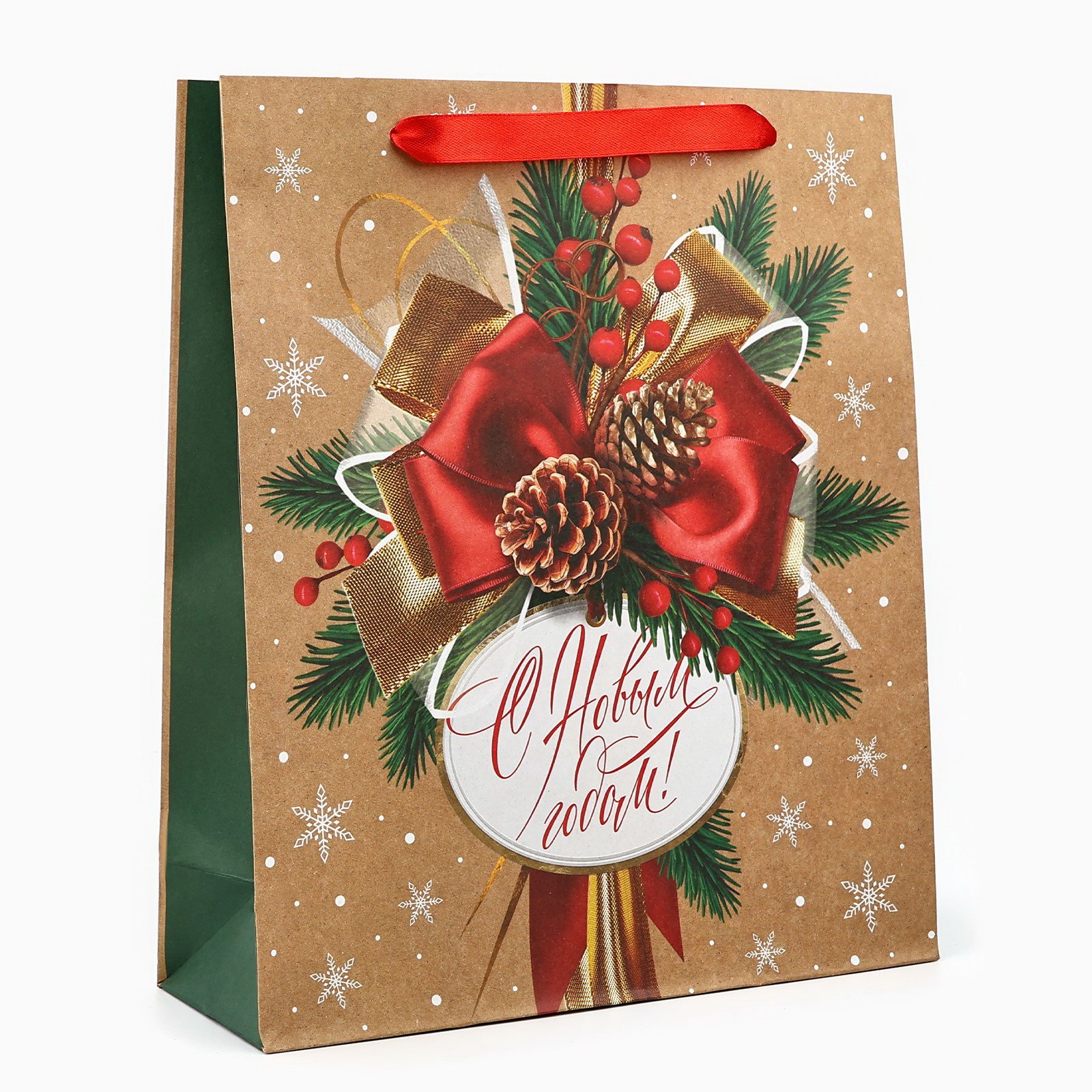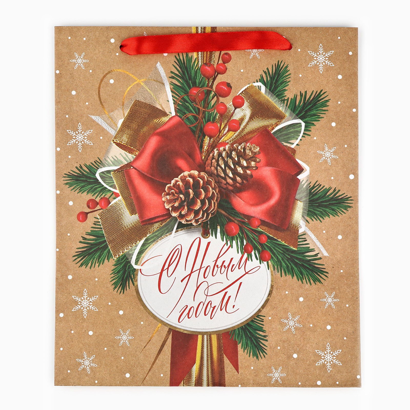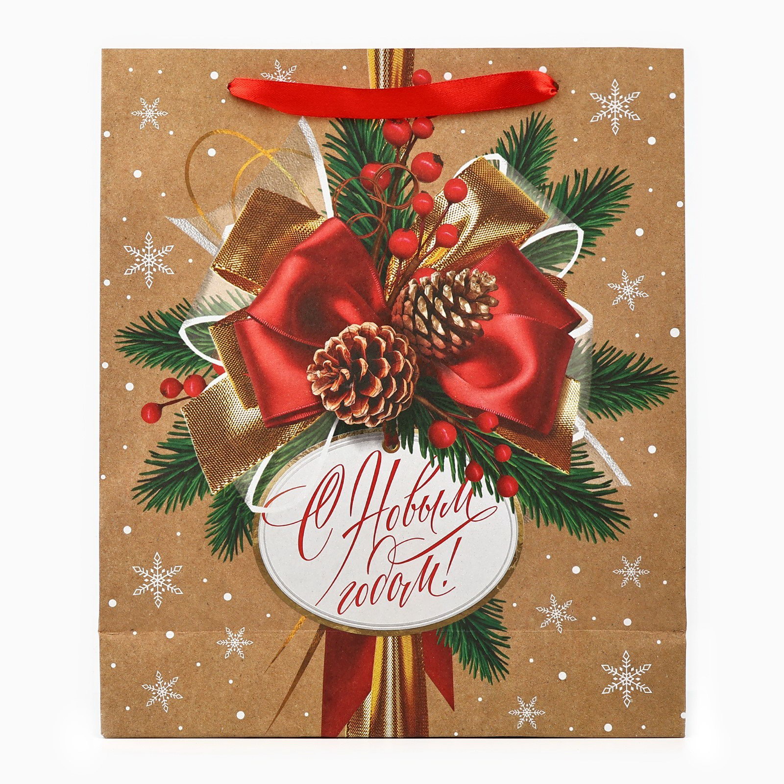 Пакет подарочный новогодний крафтовый "С Новым годом", M 26x30x9 см, 9x26x30 см., Дарите Счастье, Китай