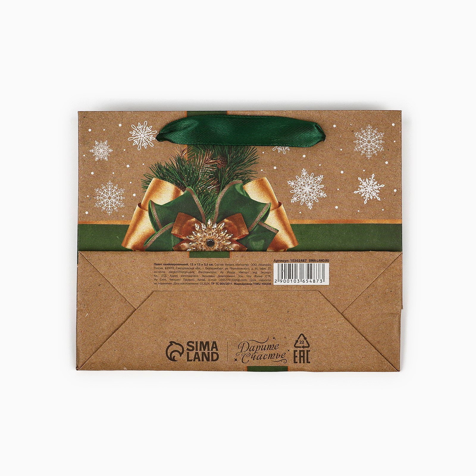 Пакет подарочный новогодний крафтовый "Новогодний бант", S 15x12x5.5 см, 5.5x15x12 см., Дарите Счастье, Китай