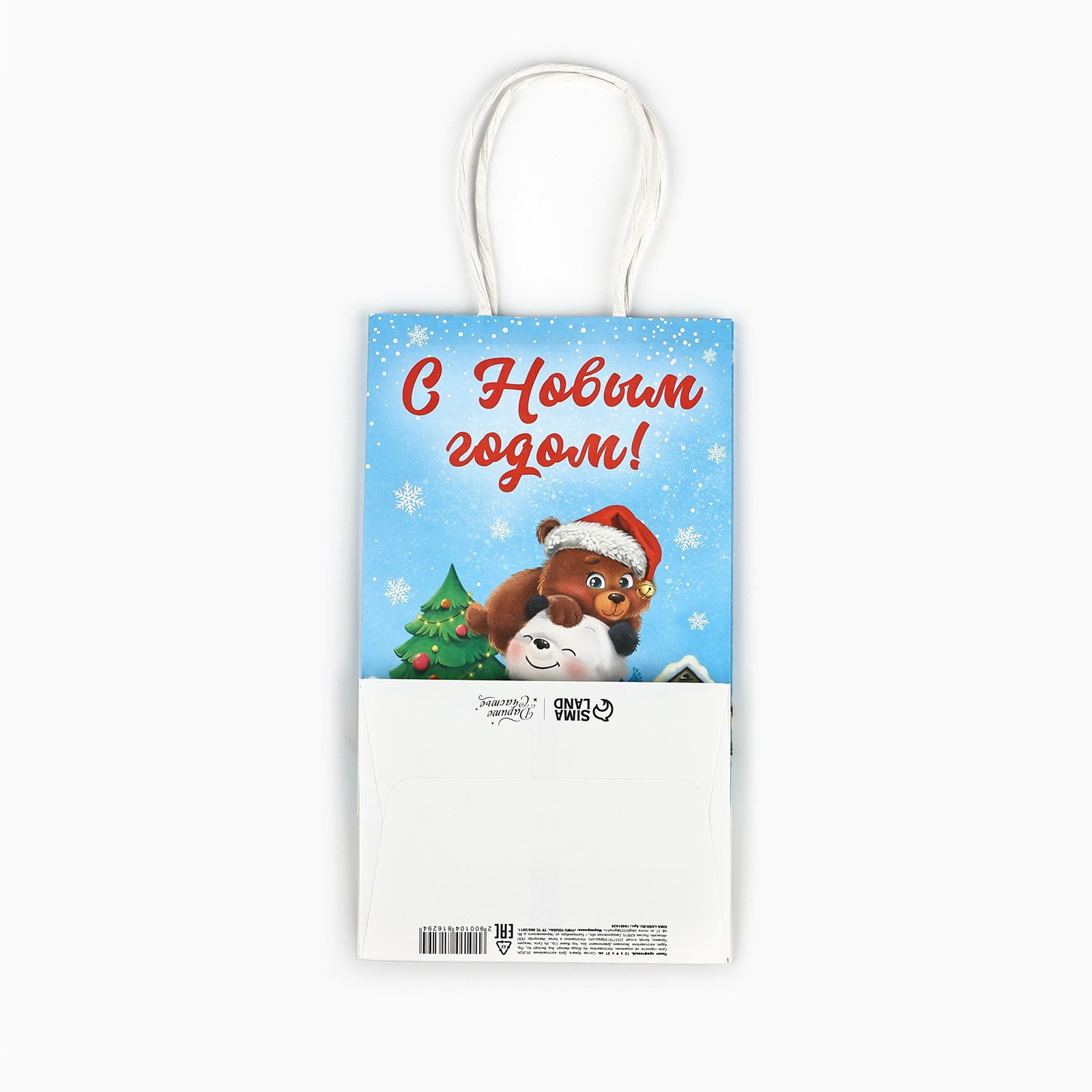Пакет подарочный новогодний крафтовый "Новый год", 12 x 9 x 21 см, 9x12x21 см., Доступные Радости, Китай