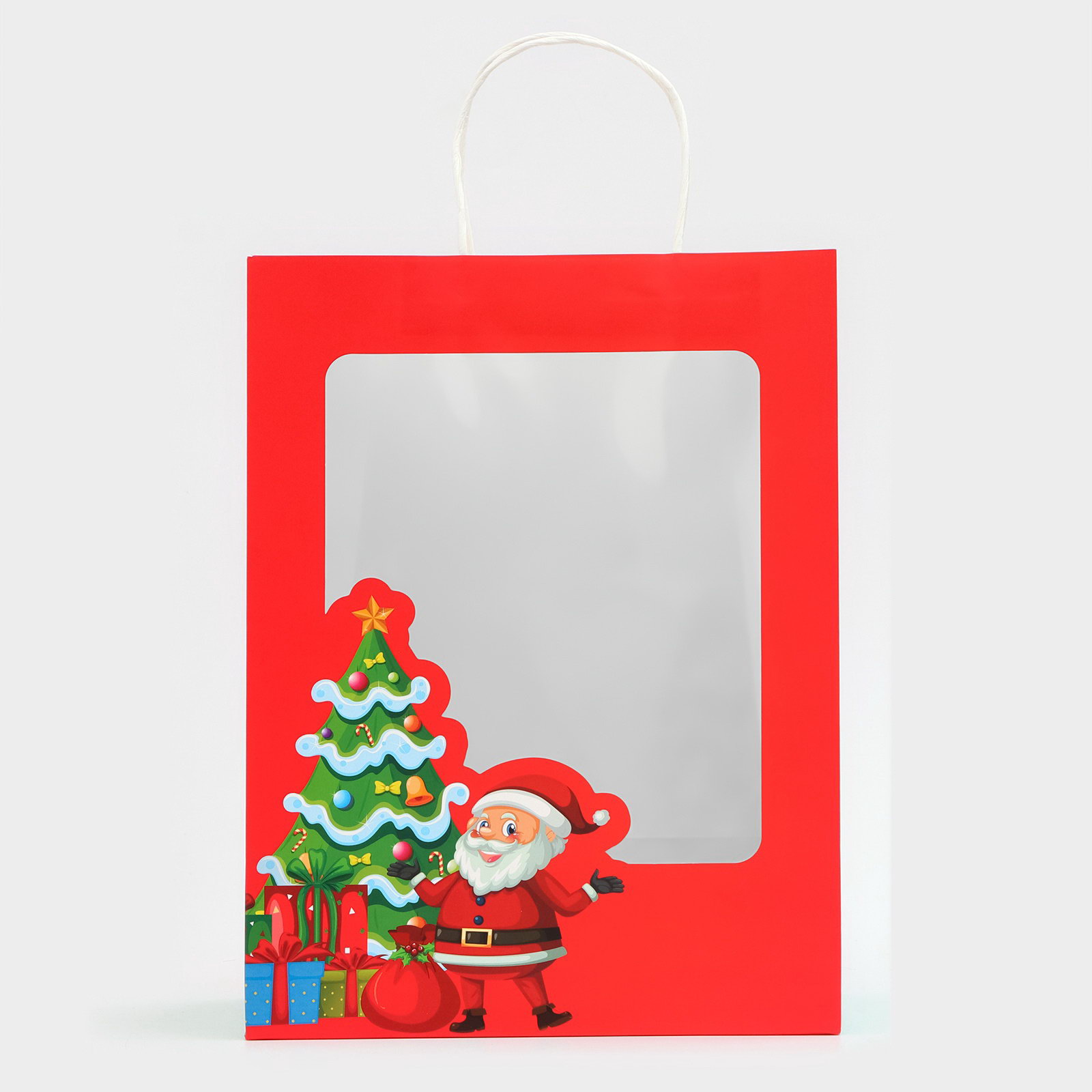 Пакет подарочный новогодний крафт, с окном "Дед Мороз" 26x35x16 см, 35x26x15 см., UPAK LAND, Китай