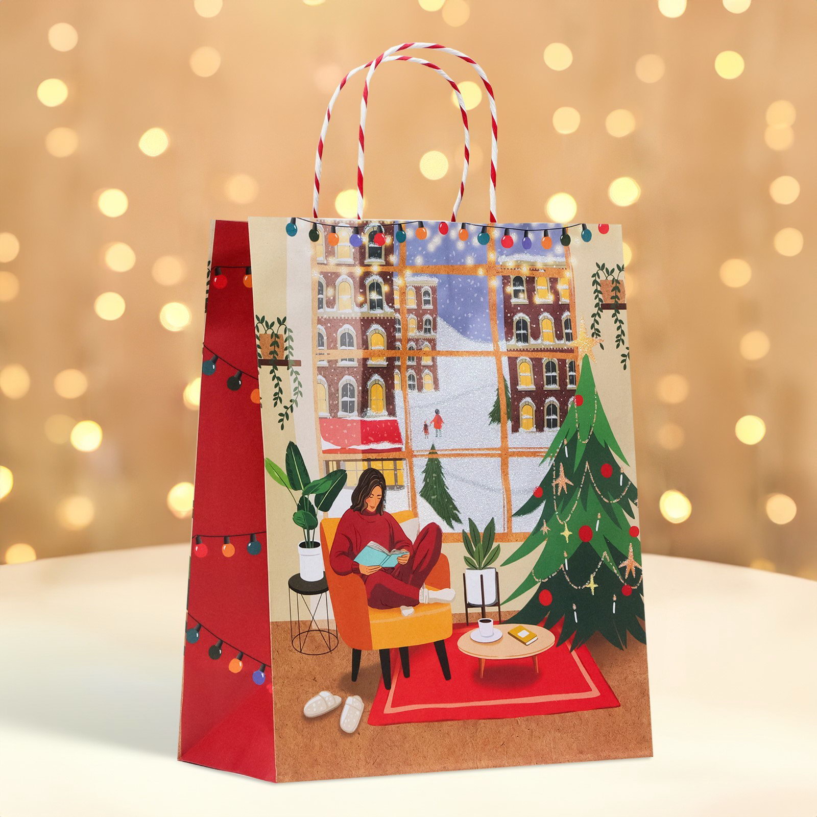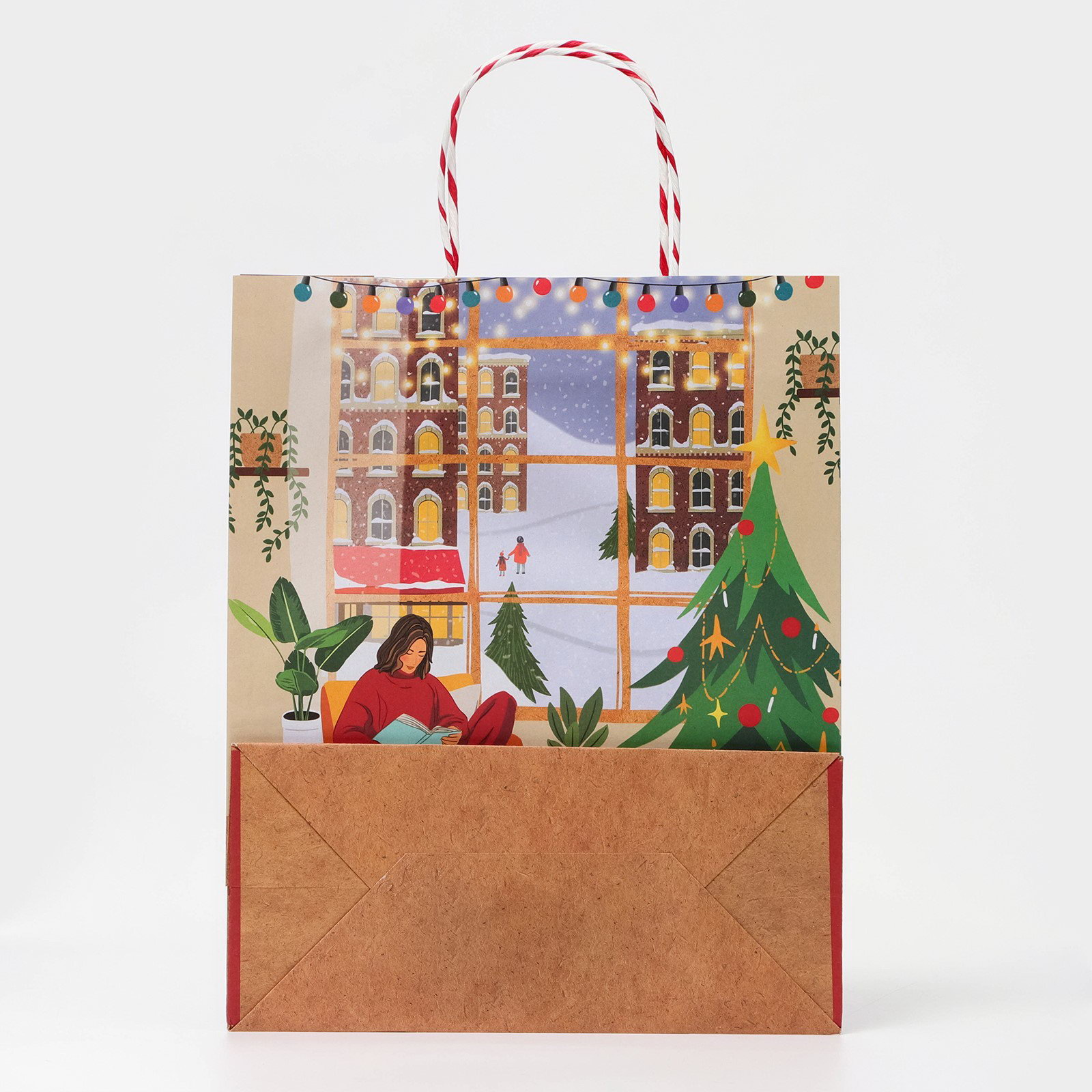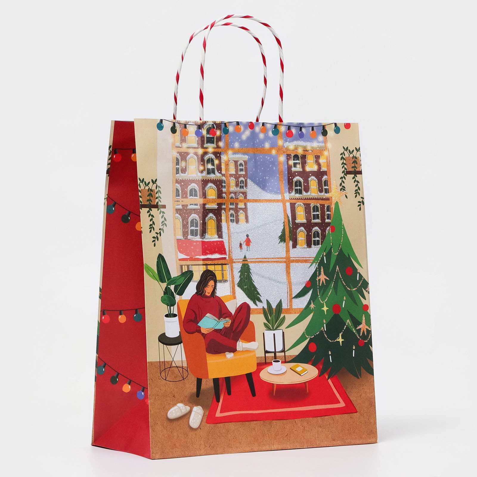 Пакет бумажный подарочный новогодний крафт "Новогодний уют" 26 x 32 x 12 см, Китай