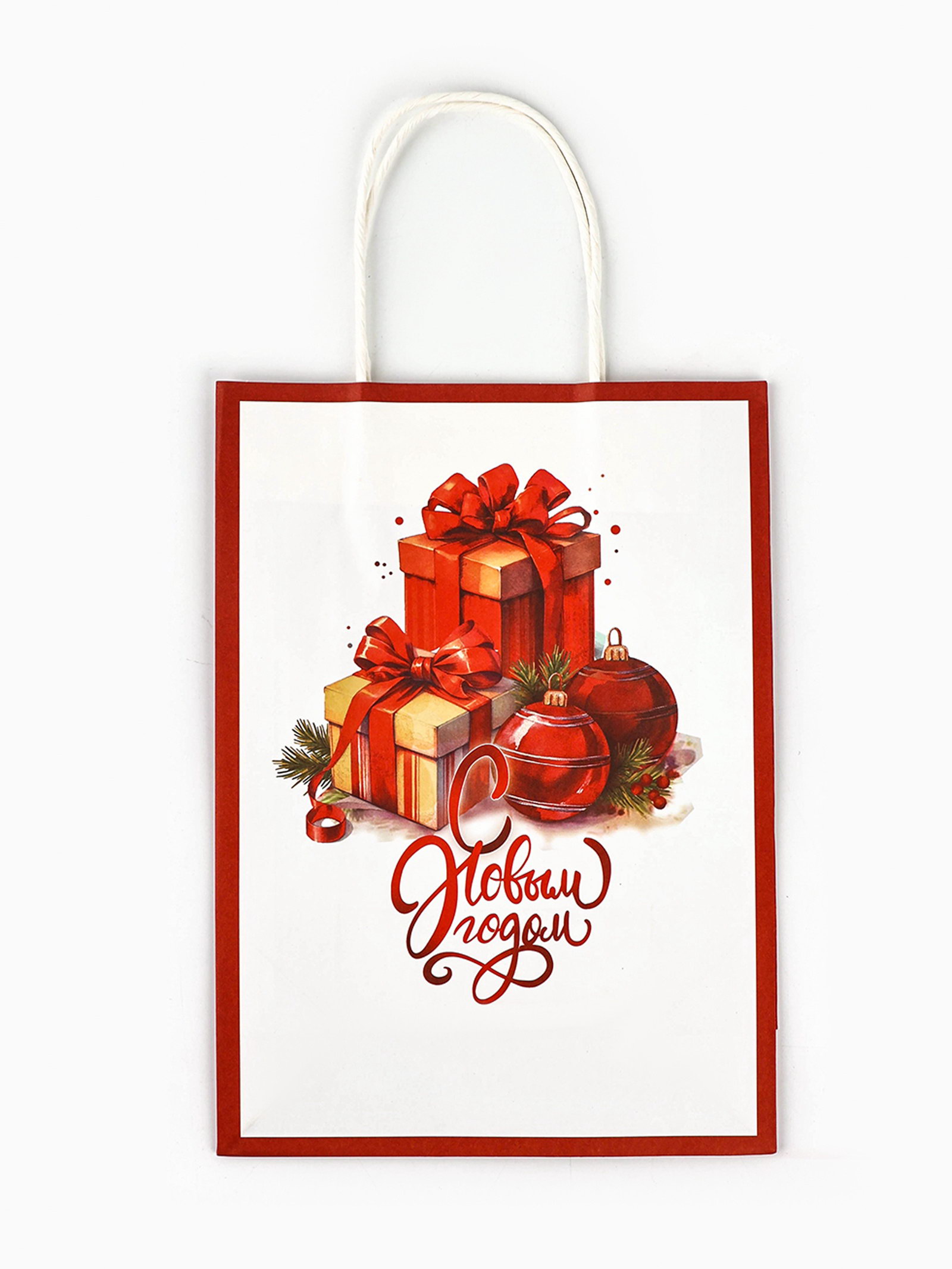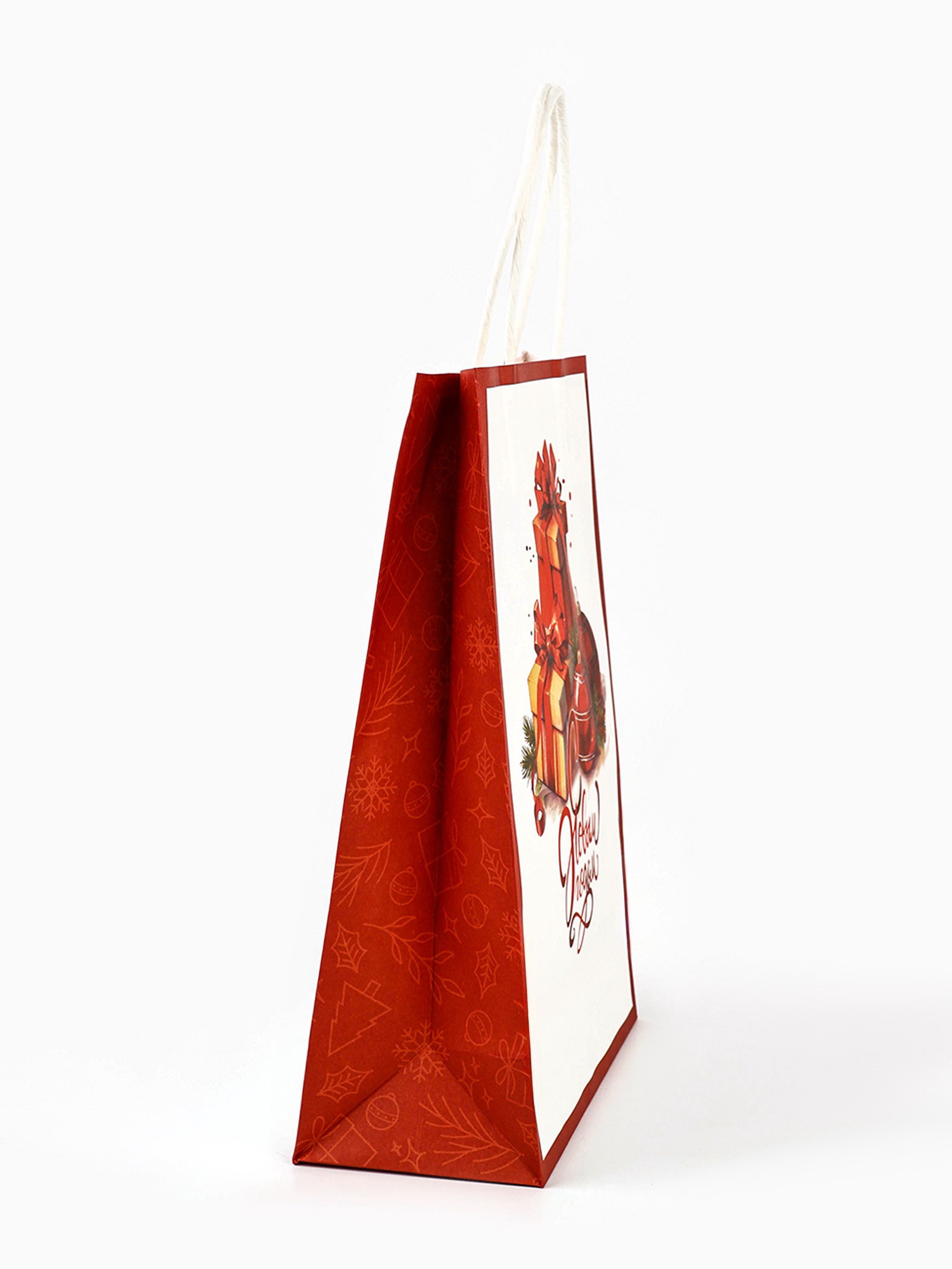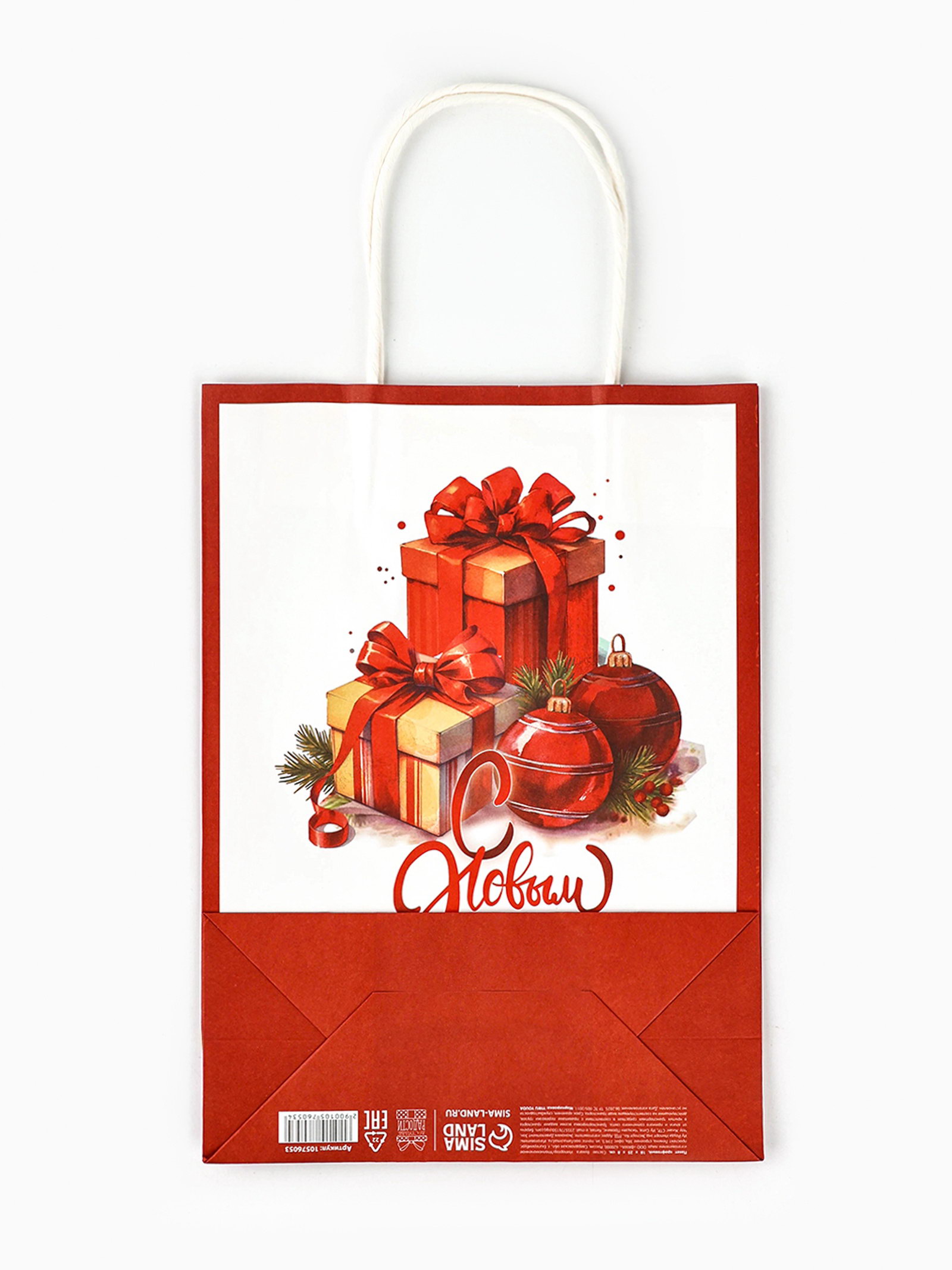 Тематика: Новогодняя, Рождественская Вид упаковки: Крафтовая упаковка, Пакет, Пакет бумажный, Пакет подарочный Отделка пакета: Декор, Крафт Тематика праздника: Новый год, Рождество Особенности: Двухсторонний, Креативный Размер упаковки: 18 x 0.2 x 33 см. Примерный размер: ML (~ 24см - 27см) Символ года: Нет Вид ручки: Крученый шпагат Плотность, г/?2: 120 Расширение: Боковая складка Вид: Крафт Форма пакета: Вертикальный Для кого: Унисекс tnved: 4819400000 Цвет: Белый Дизайн: С рисунком, надписью Подарочный пакет новогодний - это стильное и функциональное решение для упаковки и транспортировки подарков в преддверии зимних праздников.