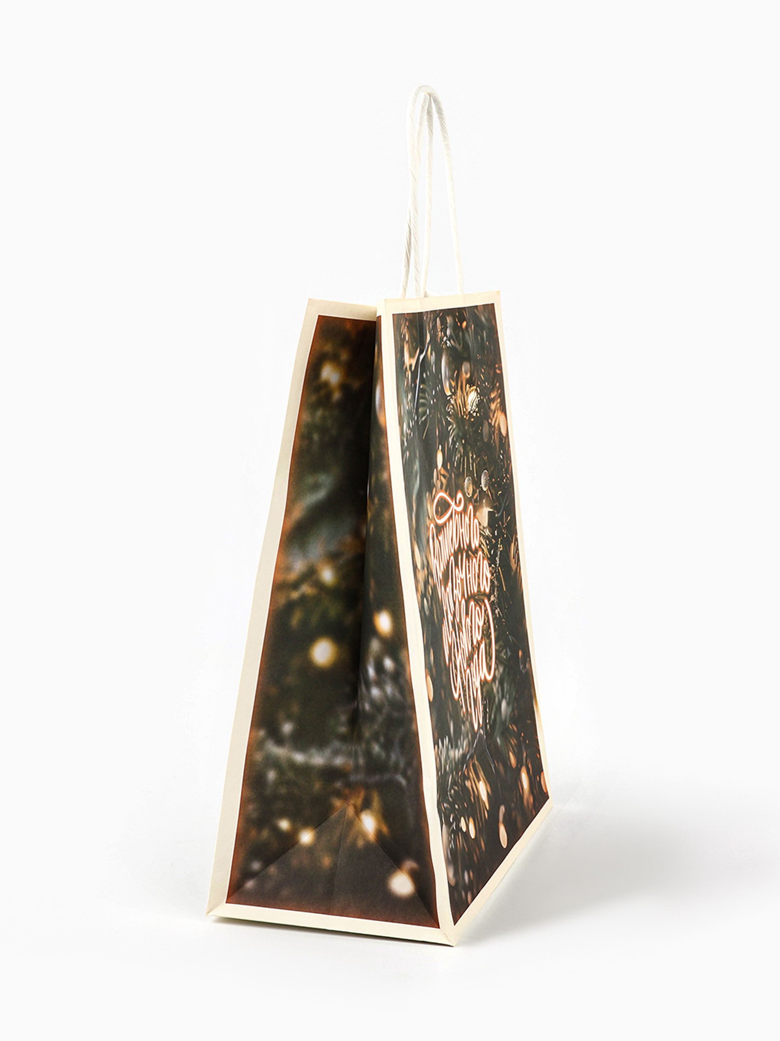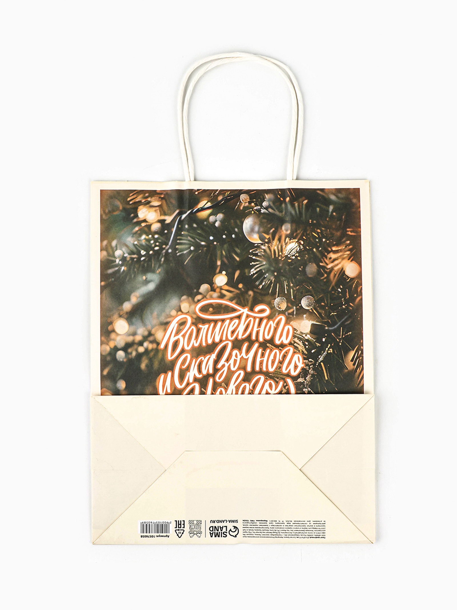 Пакет бумажный подарочный новогодний крафт "С Новым годом" 27x21x11 см, 11x21x27 см., Дарите Счастье, Китай