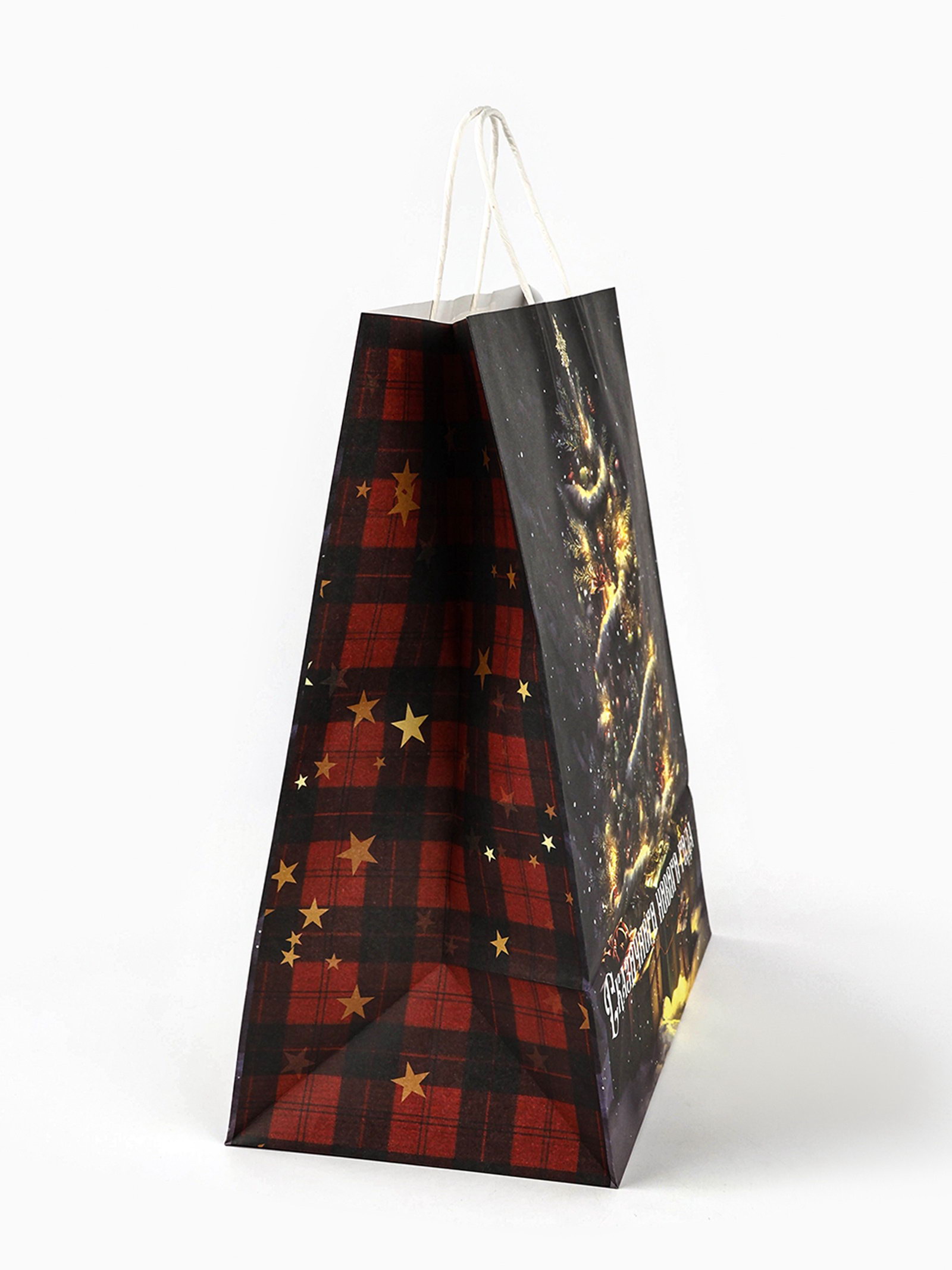 Вид упаковки: Крафтовая упаковка, Пакет, Пакет бумажный, Пакет подарочный Тематика: Новогодняя, Рождественская Отделка пакета: Декор, Крафт Особенности: Двухсторонний, Креативный Тематика праздника: Новый год, Рождество Размер упаковки: 32 x 0.2 x 46 см. Примерный размер: XL (~ 32см x 45см) Вид ручки: Крученый шпагат Символ года: Нет Плотность, г/?2: 120 Форма пакета: Вертикальный Вид: Крафт Для кого: Унисекс Расширение: Боковая складка tnved: 4819400000 Цвет: Чёрный Дизайн: С рисунком, надписью Подарочный пакет новогодний - это стильное и функциональное решение для упаковки и транспортировки подарков в преддверии зимних праздников.