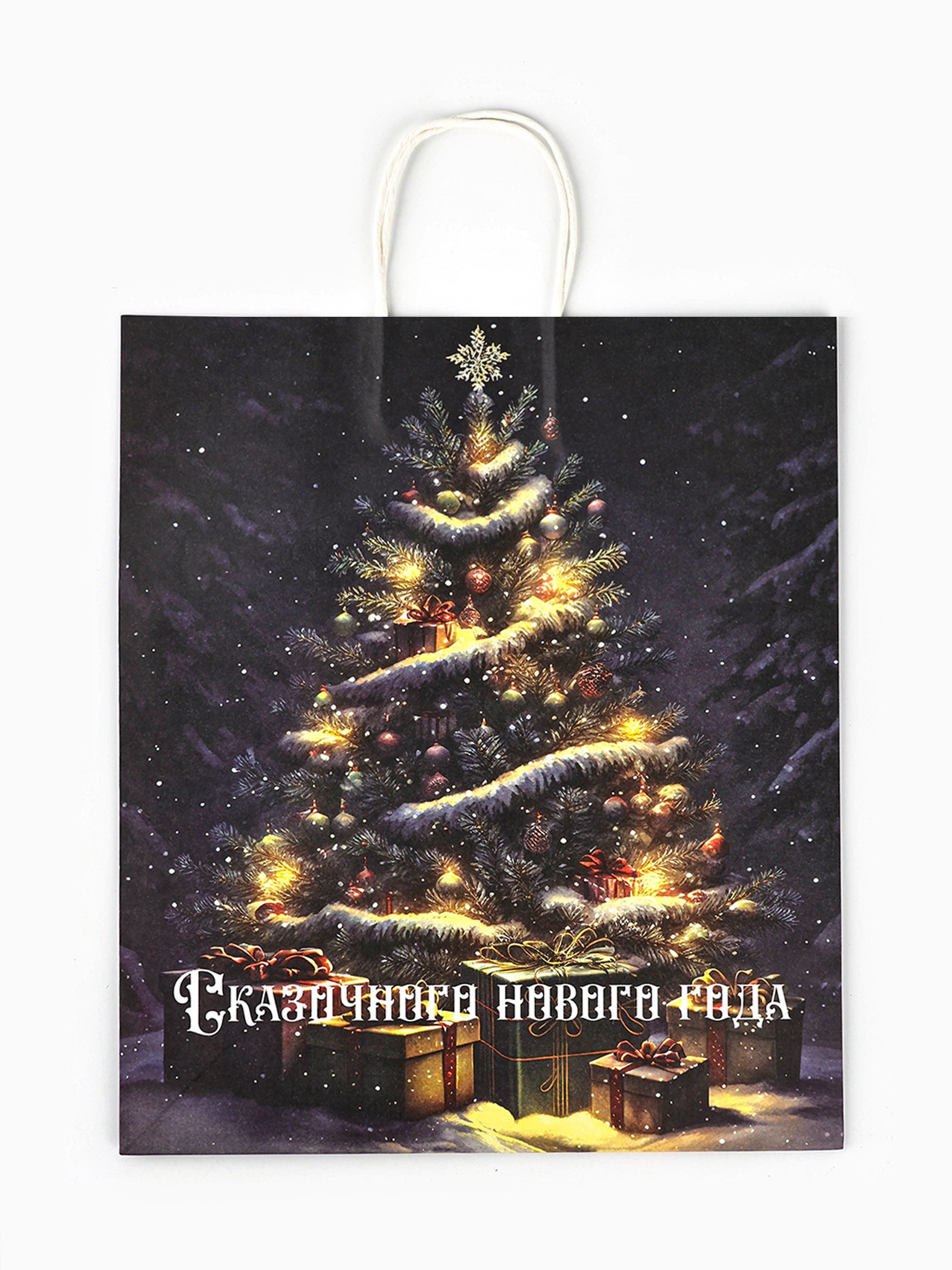 Пакет бумажный подарочный новогодний крафт "Сказочный Новый Год" 32x17.5x37 см, 17.5x32x37 см., Дарите Счастье, Китай