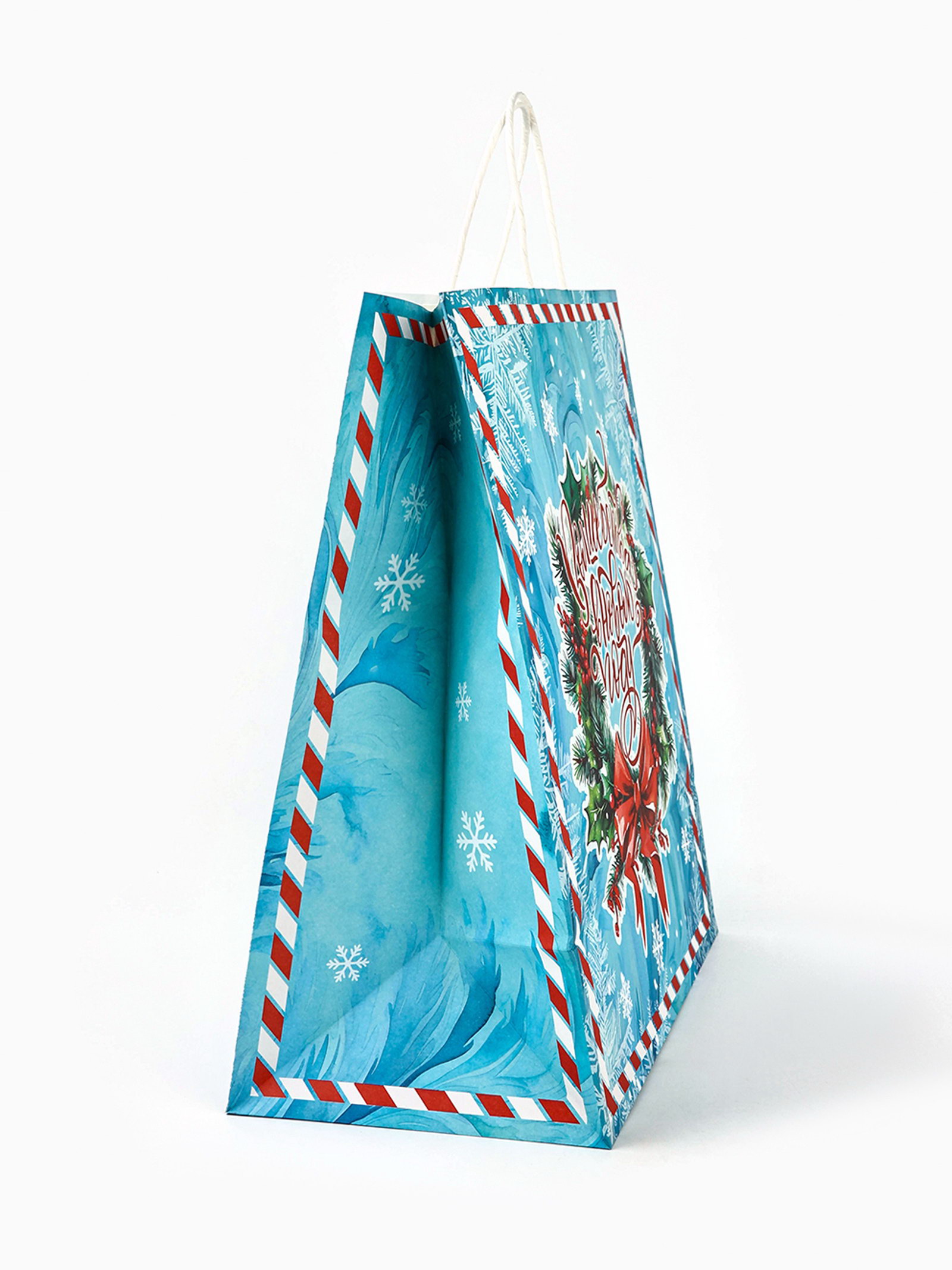 Вид упаковки: Крафтовая упаковка, Пакет, Пакет бумажный, Пакет подарочный Тематика: Новогодняя, Рождественская Отделка пакета: Декор, Крафт Особенности: Двухсторонний, Креативный Тематика праздника: Новый год, Рождество Размер упаковки: 32 x 0.2 x 46 см. Символ года: Нет Примерный размер: XL (~ 32см x 45см) Вид ручки: Крученый шпагат Плотность, г/?2: 120 Для кого: Унисекс Форма пакета: Вертикальный Расширение: Боковая складка Вид: Крафт tnved: 4819400000 Цвет: Голубой Дизайн: С рисунком, надписью Подарочный пакет новогодний - это стильное и функциональное решение для упаковки и транспортировки подарков в преддверии зимних праздников.