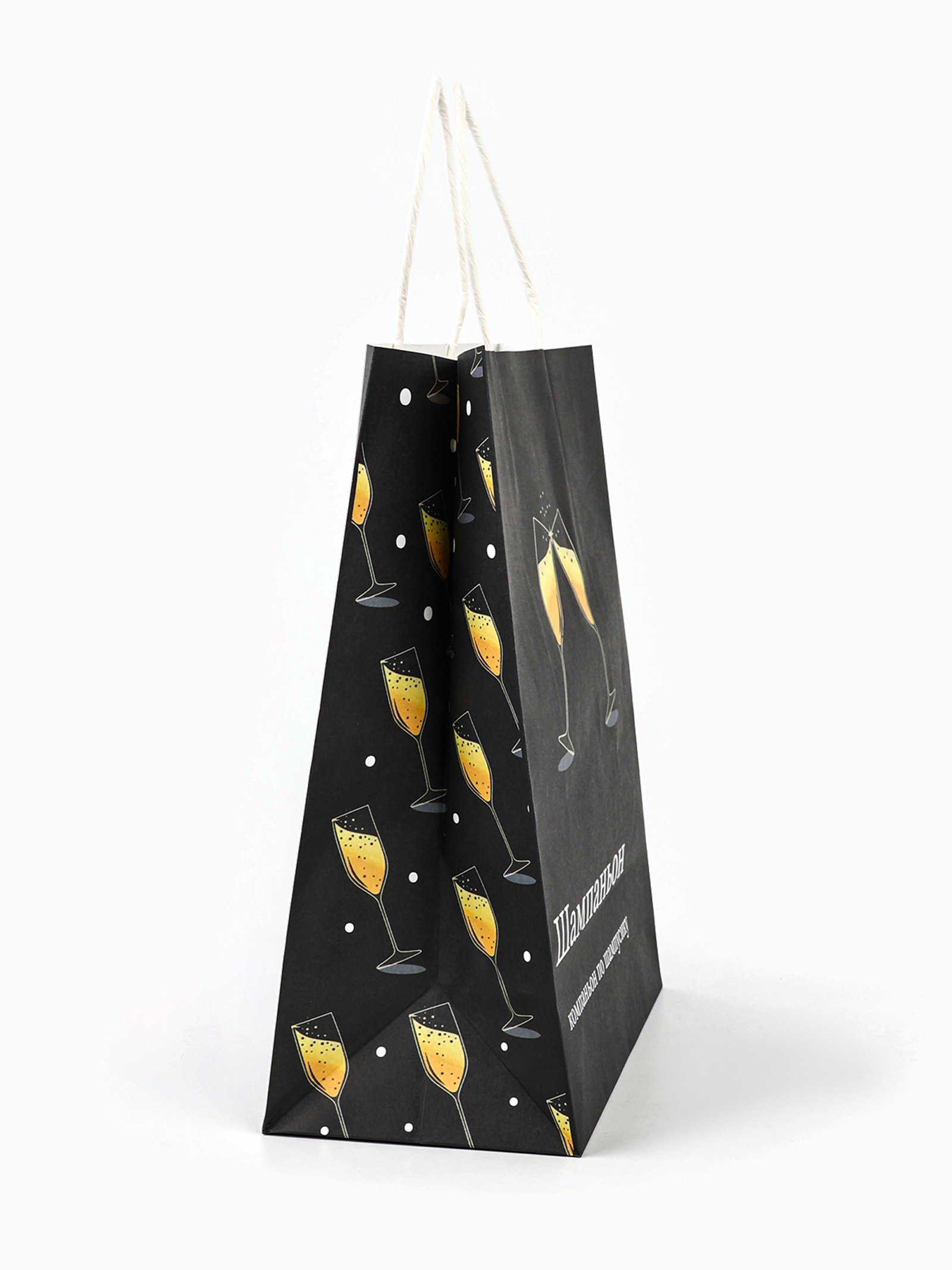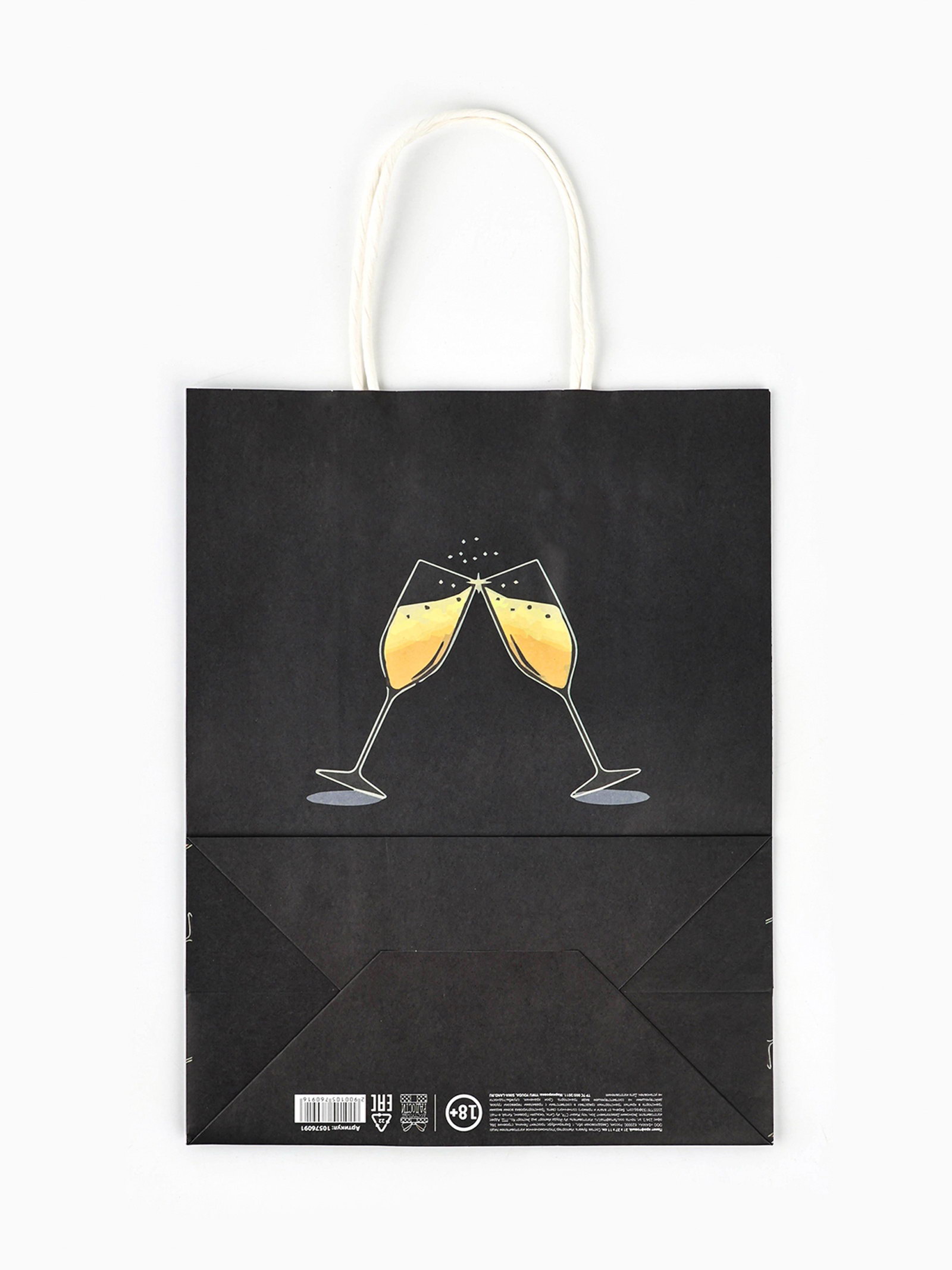 Пакет бумажный подарочный новогодний крафт, "Шампаньон", 27x21x11 см, 11x22x27 см., Дарите Счастье, Китай