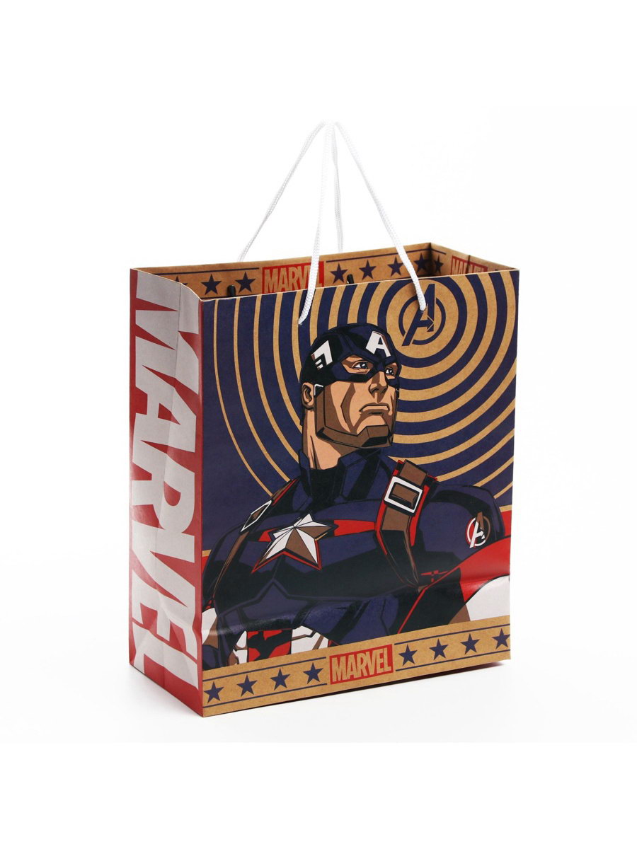 Пакет подарочный крафт 22x27x11.5 см, Мстители, Дарите Счастье, Китай