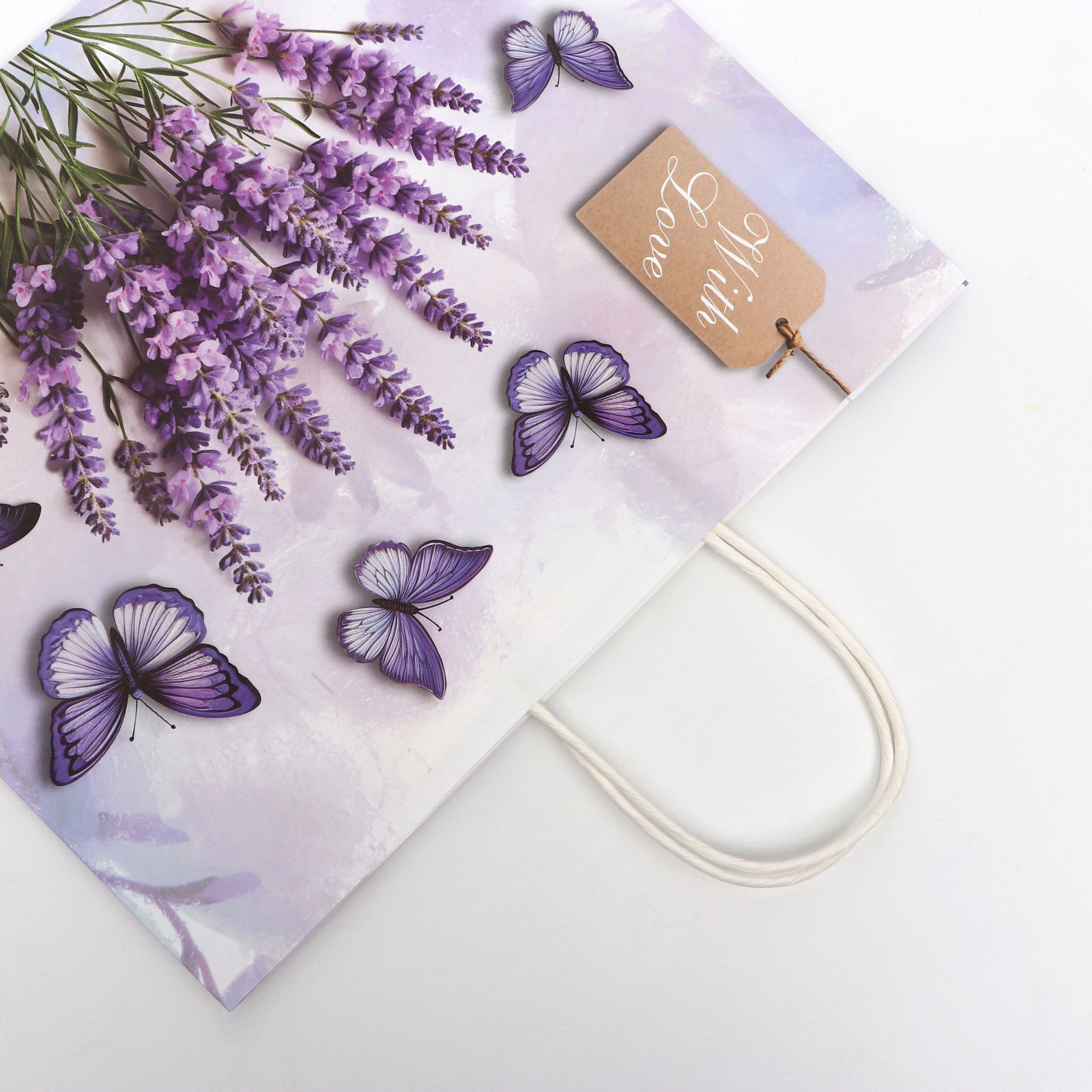 Пакет подарочный крафтовый "Бабочки" 31.5x25x11.5 см, 120 г/?2, 25x31.5x11.5 см., UPAK LAND, Китай