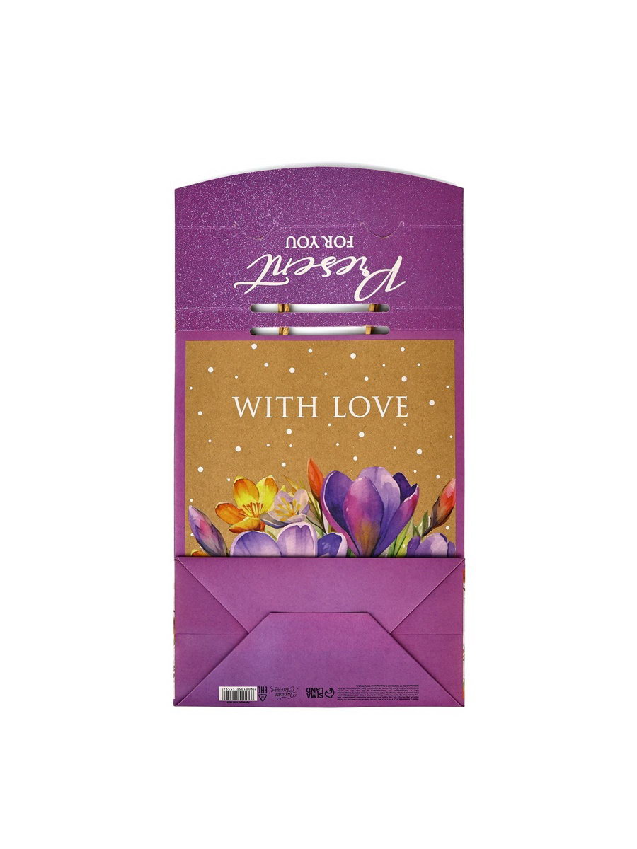 Пакет с клапаном "Подарок", цветы, крафт, глиттер, 19.5 x 10 x 25 см, 10x19.5x25.2 см., Дарите Счастье, Китай
