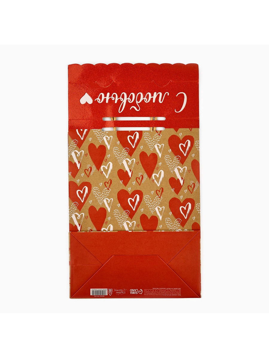 Пакет с клапаном "С любовью", сердца, крафт, глиттер, 19.5 x 10 x 25 см, 10x19.5x25.2 см., Дарите Счастье, Китай