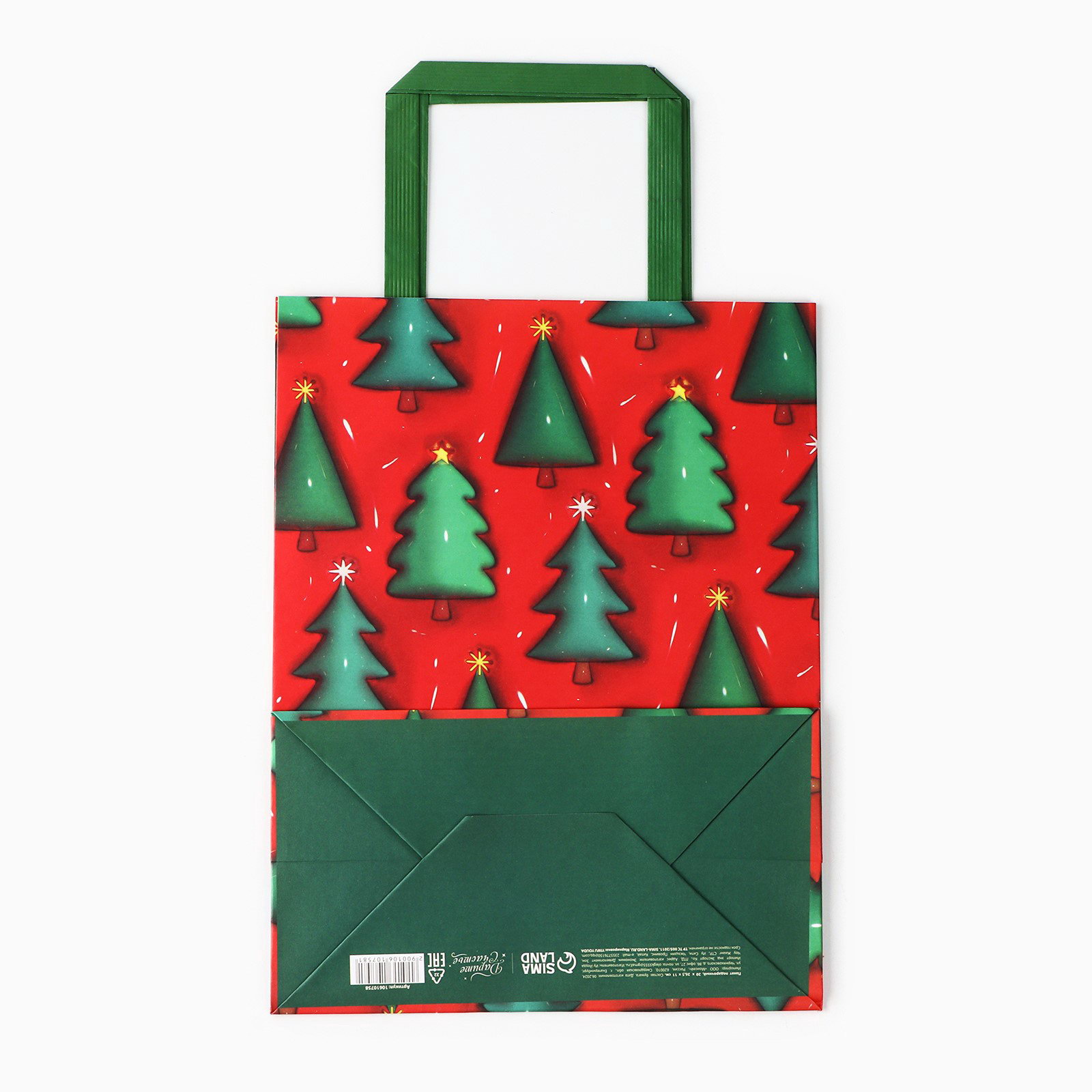 Пакет подарочный новогодний "Ёлочки", 20 x 11 x 27.5 см, 11x20x27.7 см., Дарите Счастье, Китай