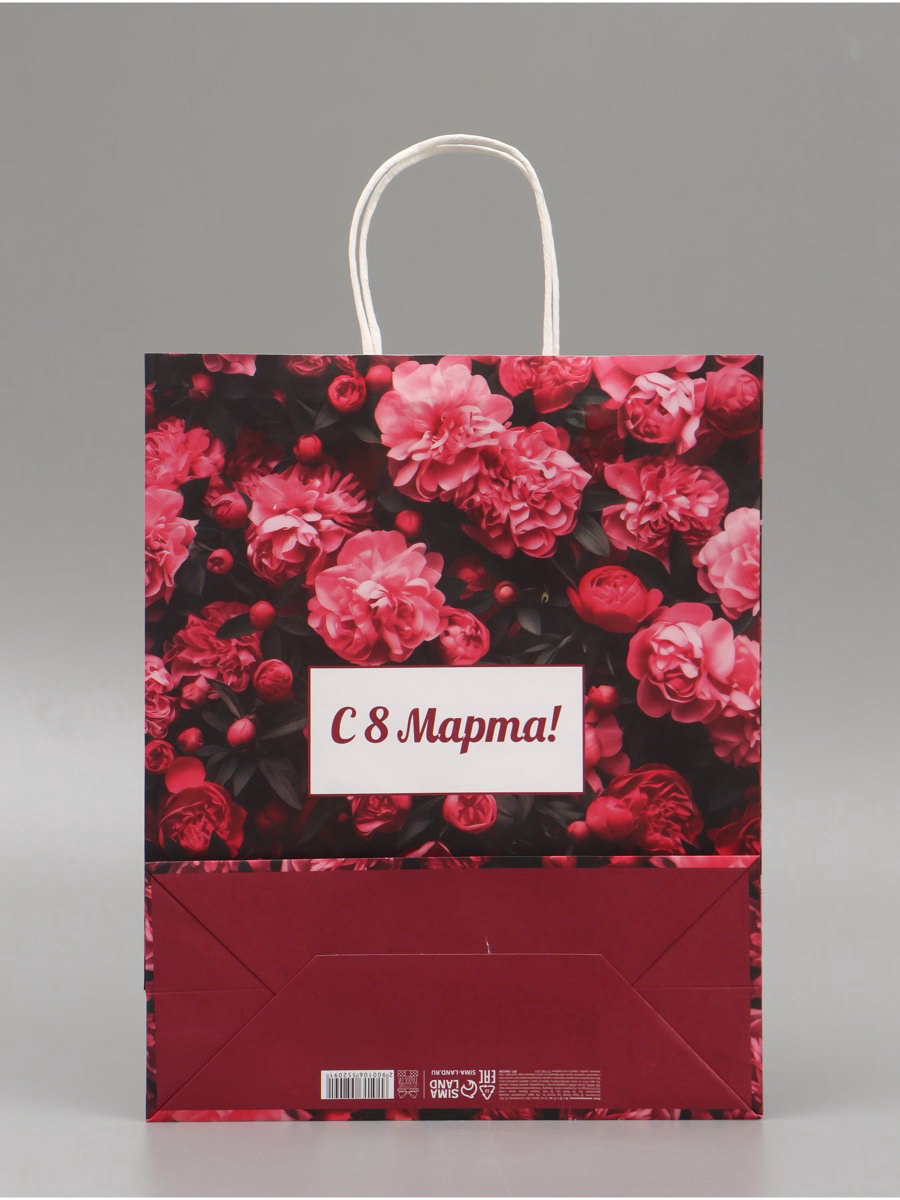 Пакет подарочный крафт "С 8 Марта" 25x12x32 См, 11x26x32 см., Доступные Радости, Китай