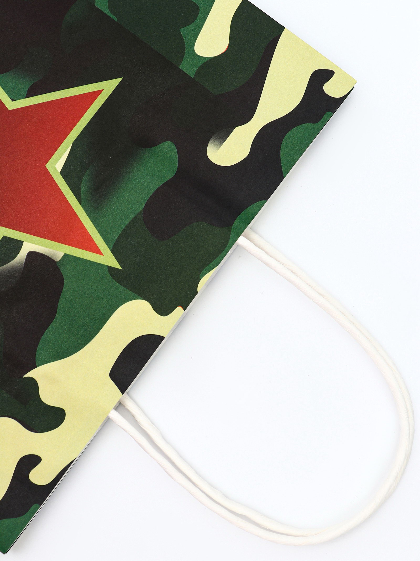 Тематика: Камуфляж, Мужская, Надписи, цифры, буквы, Патриотическая Отделка пакета: Декор, Крафт Особенности: Креативный, Пакет-открытка Вид: Крафт, Крафт пакет Вид упаковки: Пакет бумажный, Пакет подарочный Для кого: Для мальчика, Для мужчины Размер упаковки: 21 x 0.2 x 36 см. Плотность, г/?2: 120 Примерный размер: ML (~ 23см x 27см) Цвет: Зелёный Тематика праздника: 23 Февраля Вид ручки: Крученый шпагат Форма: Прямоугольная Расширение: Боковая складка Форма пакета: Вертикальный Рисунок: Да tnved: 4819400000 Набор: Нет Дизайн: С рисунком, надписью Этот крафтовый пакет с надписью "С 23 Февраля!" станет идеальным выбором для упаковки подарков на День защитника Отечества.