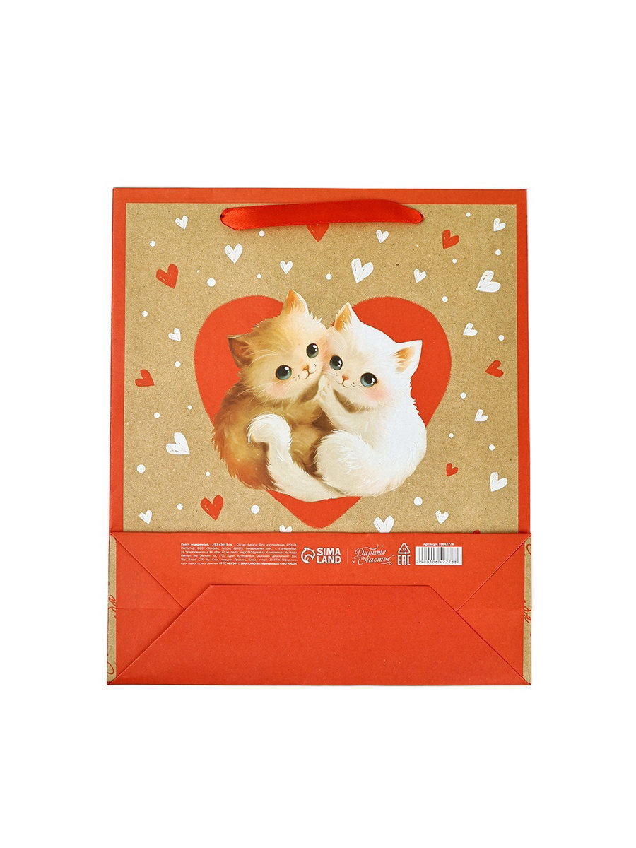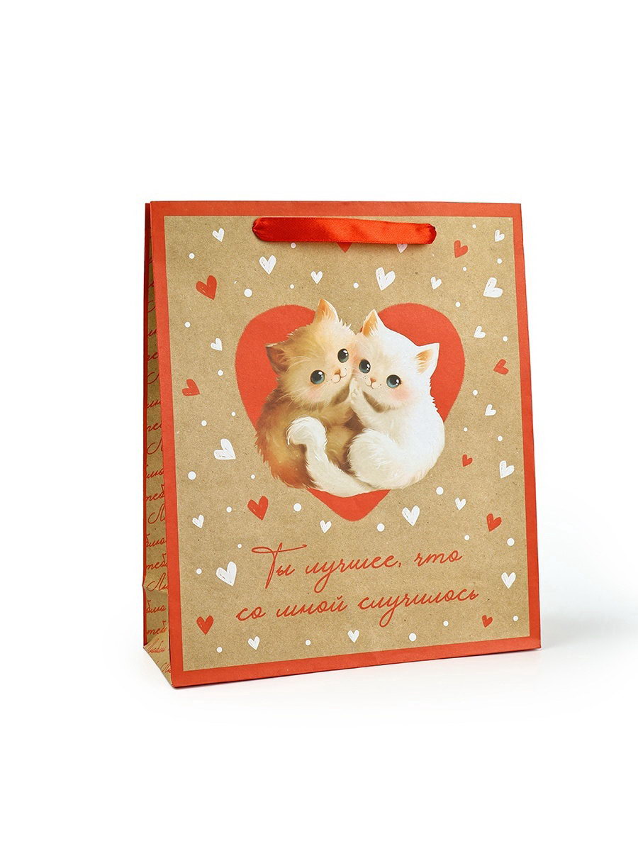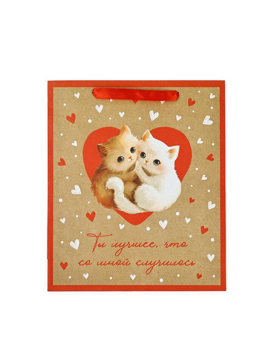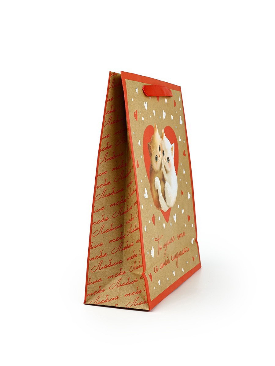 Пакет подарочный крафтовый "Люблю тебя", M 25.5 x 9 x 30 см, 9x25.5x30 см., Дарите Счастье, Китай