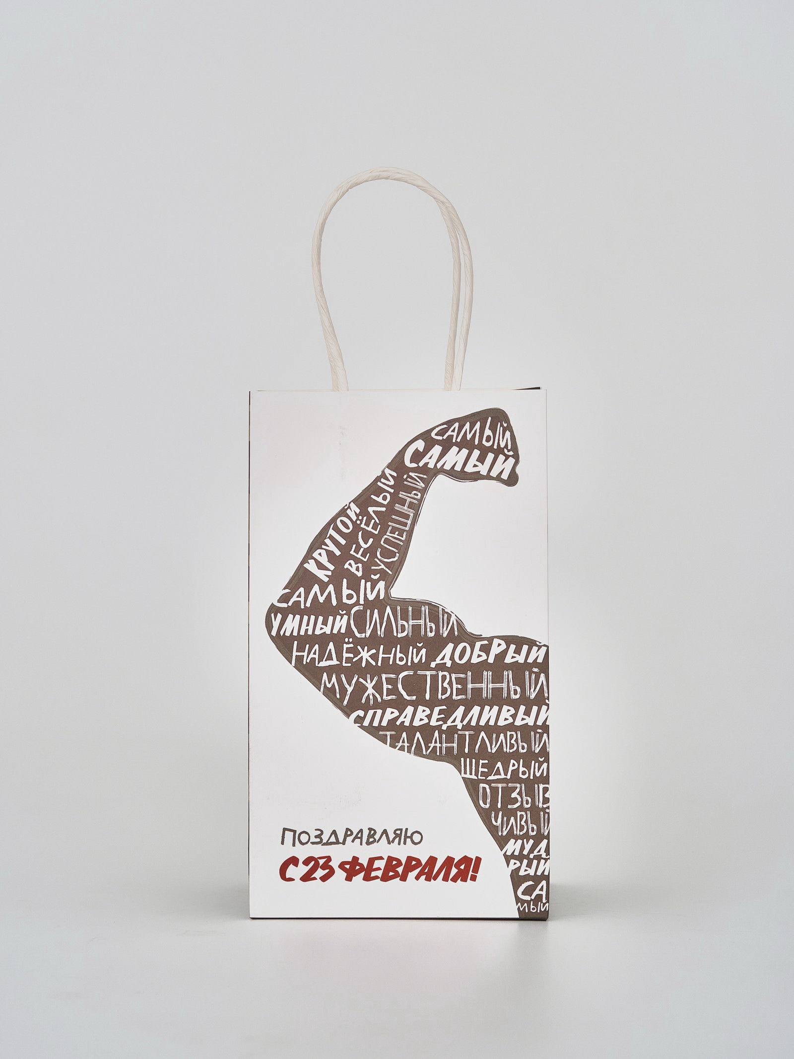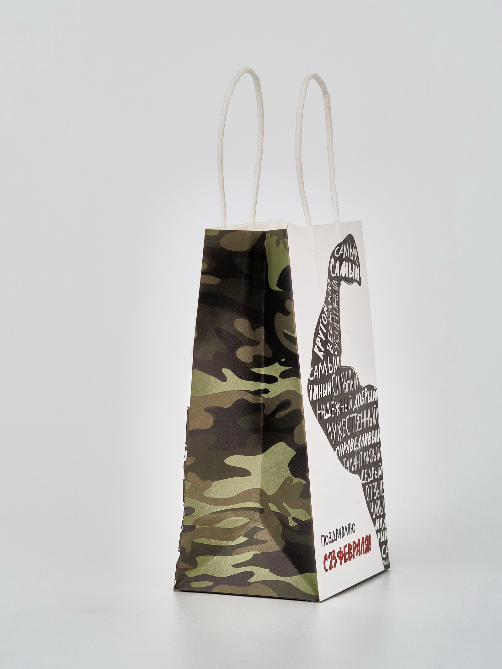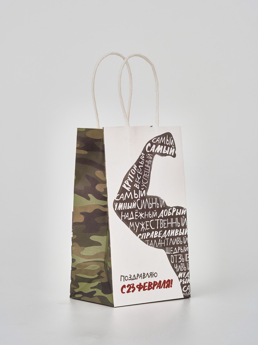 Пакет подарочный крафт "С 23 февраля", 12 x 21 x 9 см, 21x12x9 см., Дарите Счастье, Китай