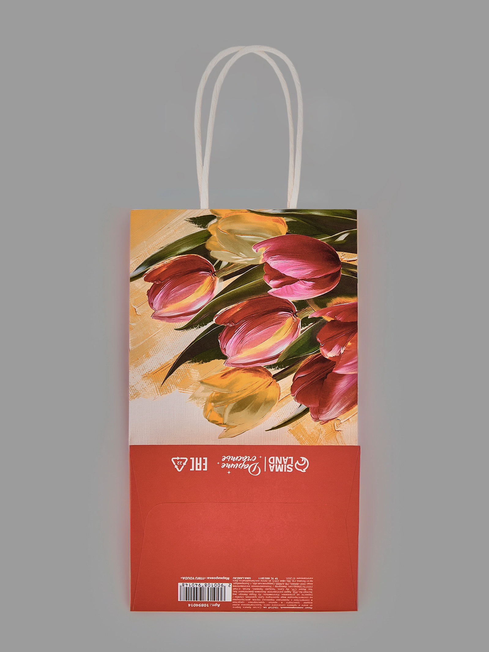 Пакет подарочный крафт "8 марта", 12x21x9 см, 21x12x9 см., Дарите Счастье, Китай