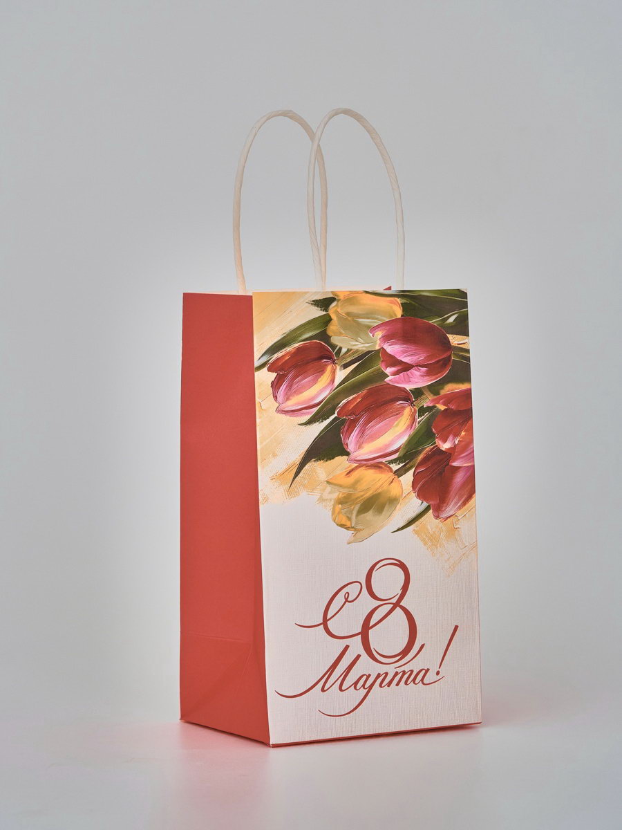 Пакет подарочный крафт "8 марта", 12x21x9 см, 21x12x9 см., Дарите Счастье, Китай