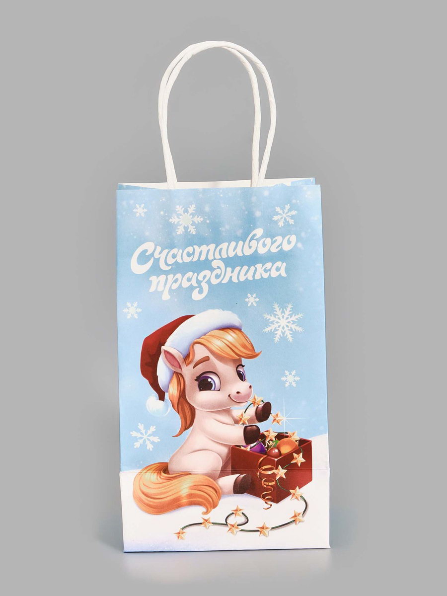 Пакет подарочный новогодний "Лошадка 2026", 12x21x9 см, 9x12x21 см., Дарите Счастье, Китай