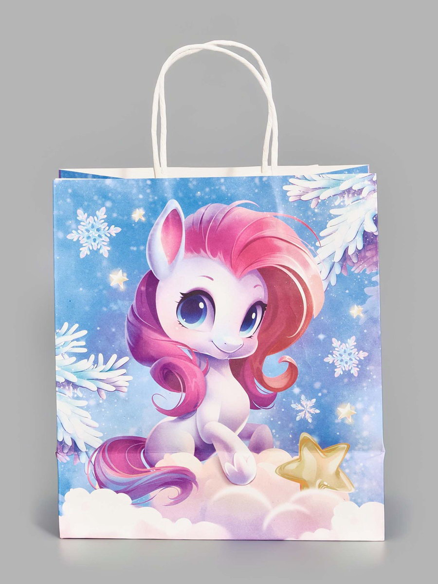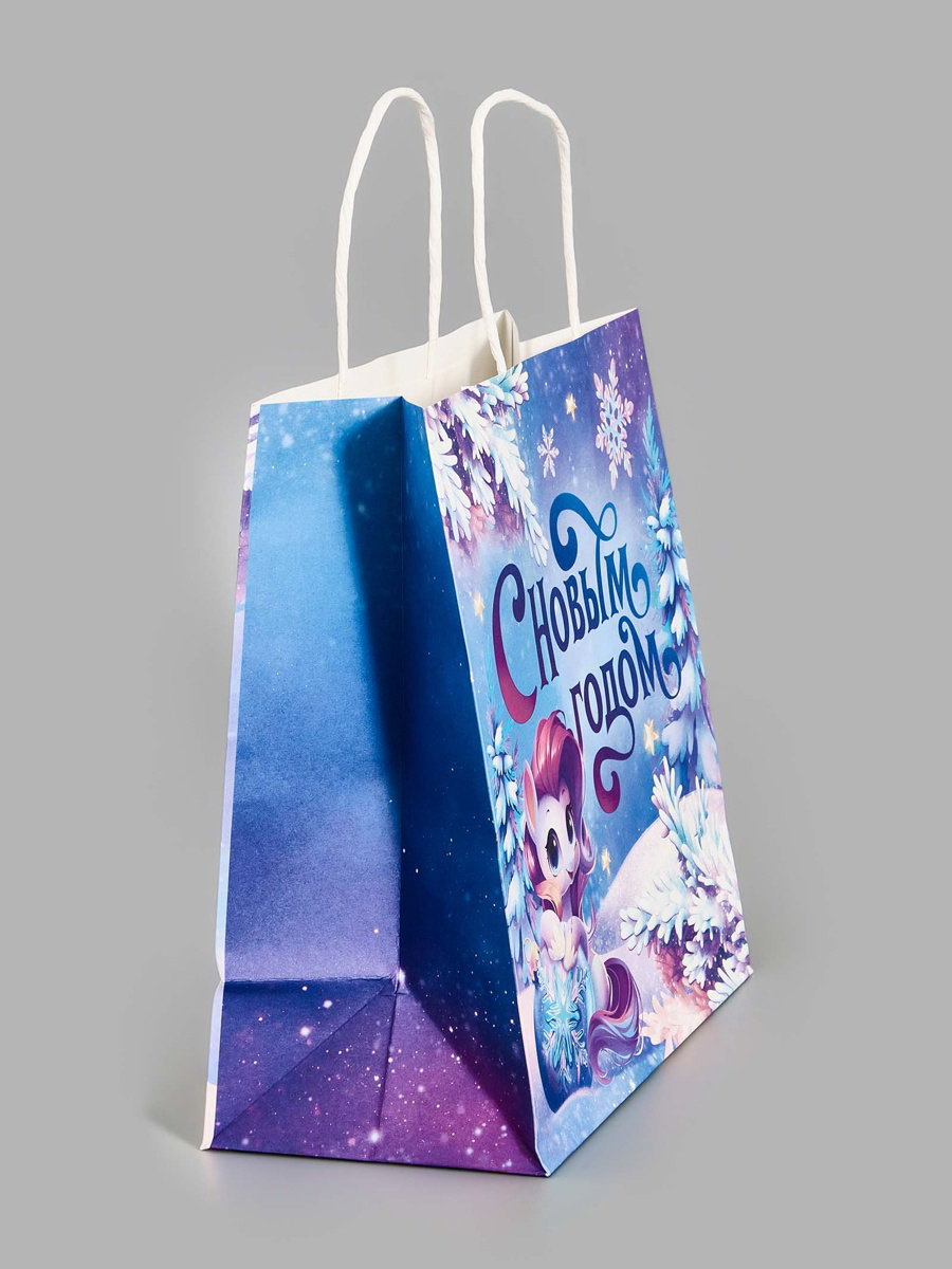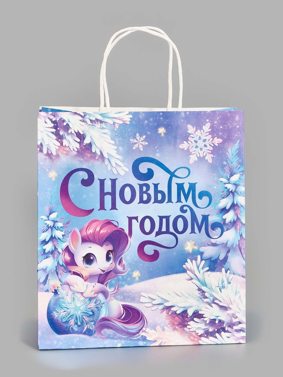 Пакет подарочный новогодний "Лошадь 2026", белый крафт, 22x25x12 см, 12x22x25 см., Дарите Счастье, Китай