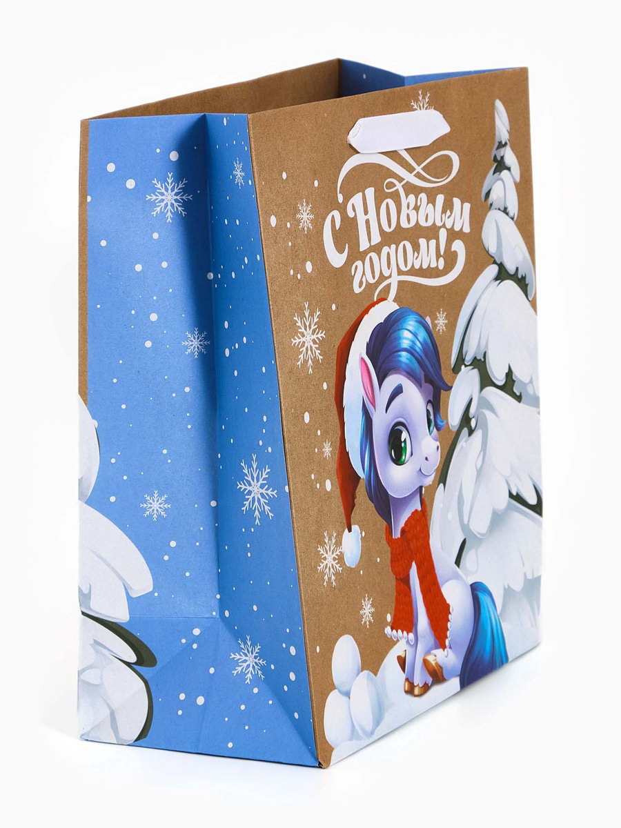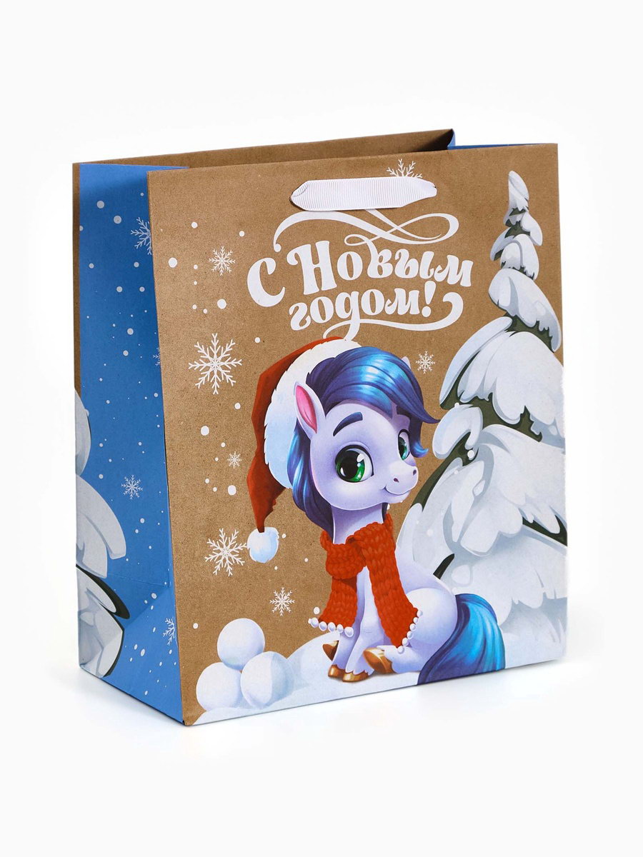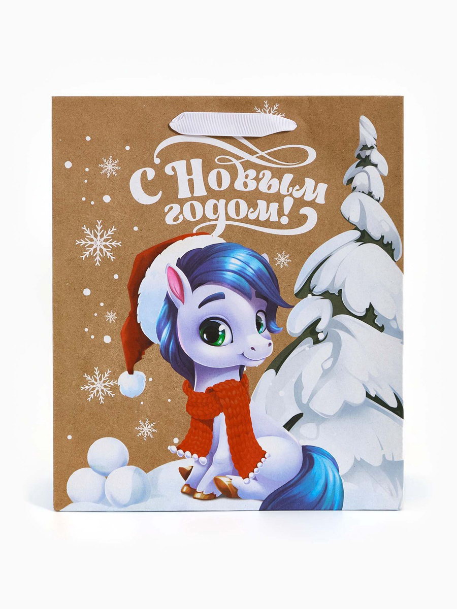 Пакет новогодний крафтовый подарочный "Новый год 2026", лошадь, ML 23x27x11.5 см, 11.5x23x27 см., Дарите Счастье, Китай