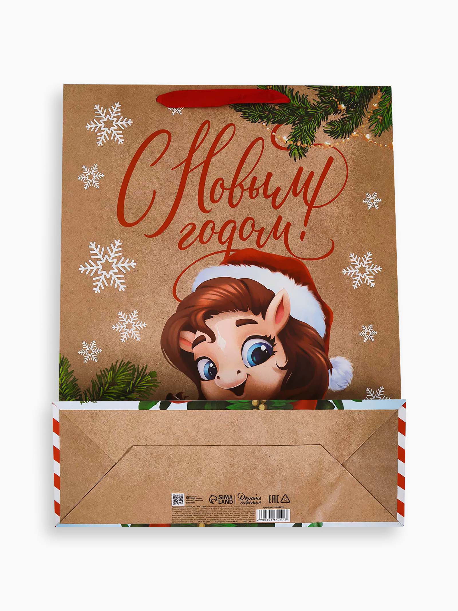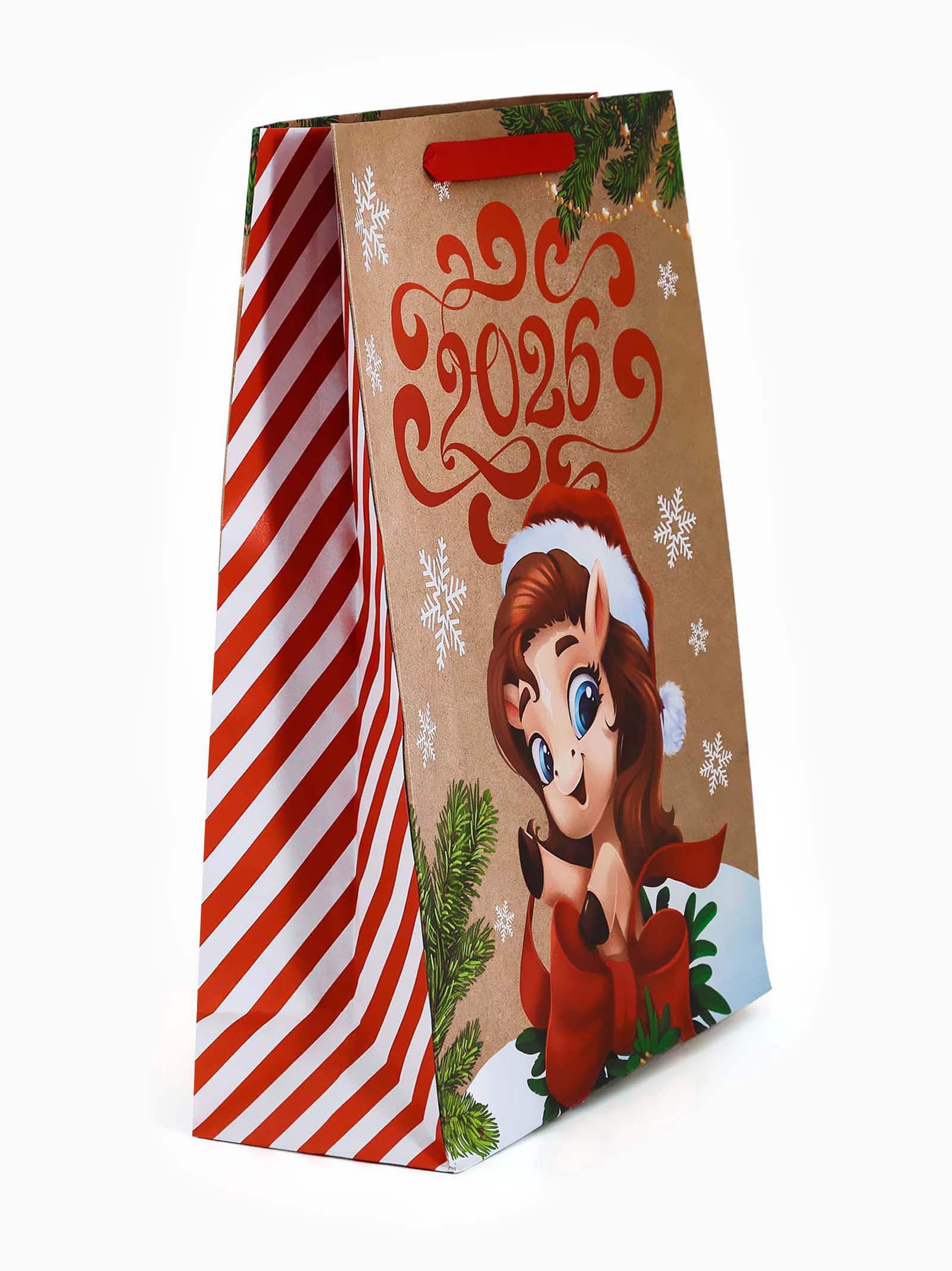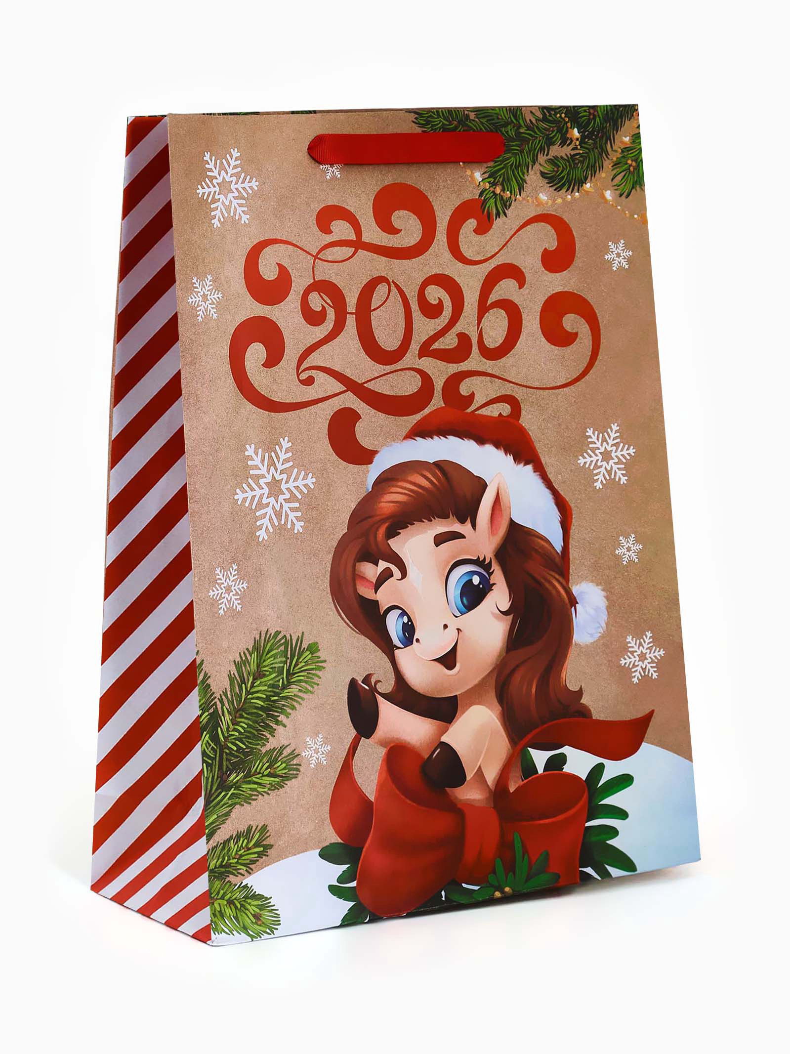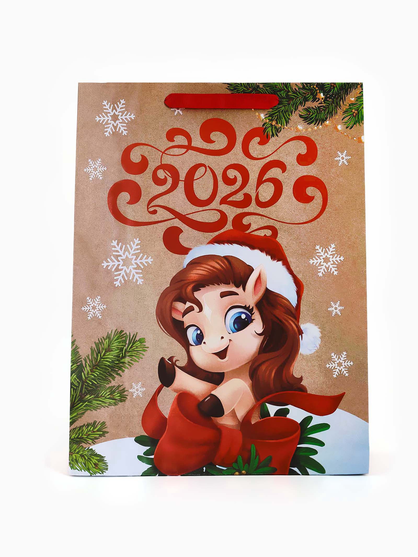 Пакет новогодний крафтовый подарочный "Новый год 2026", лошадь, L 31x40x11.5 см, 11.5x31x40 см., Дарите Счастье, Китай