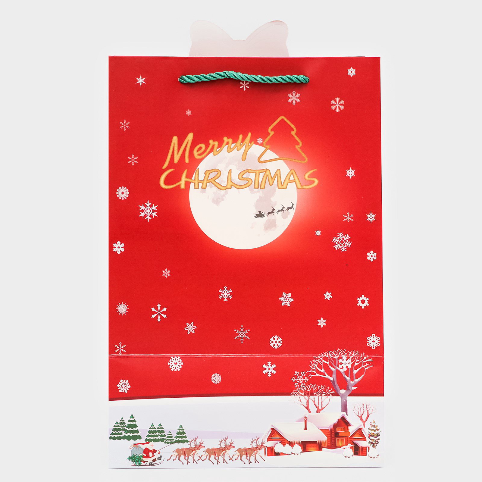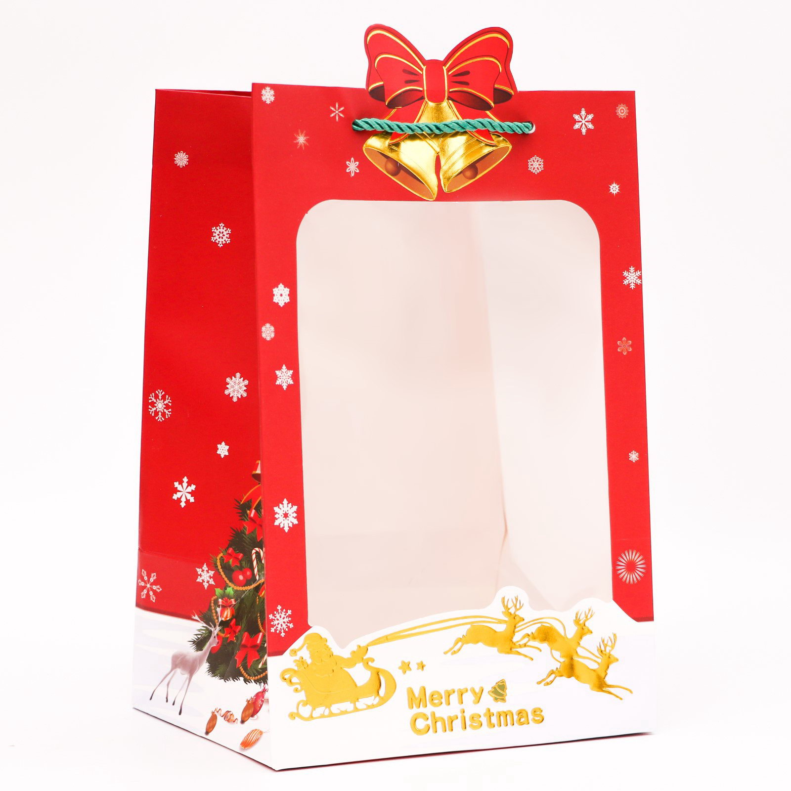 Пакет подарочный ламинированный с окном "Рождественский звон", тиснение 30x20x16 см, красный, UPAK LAND, Китай