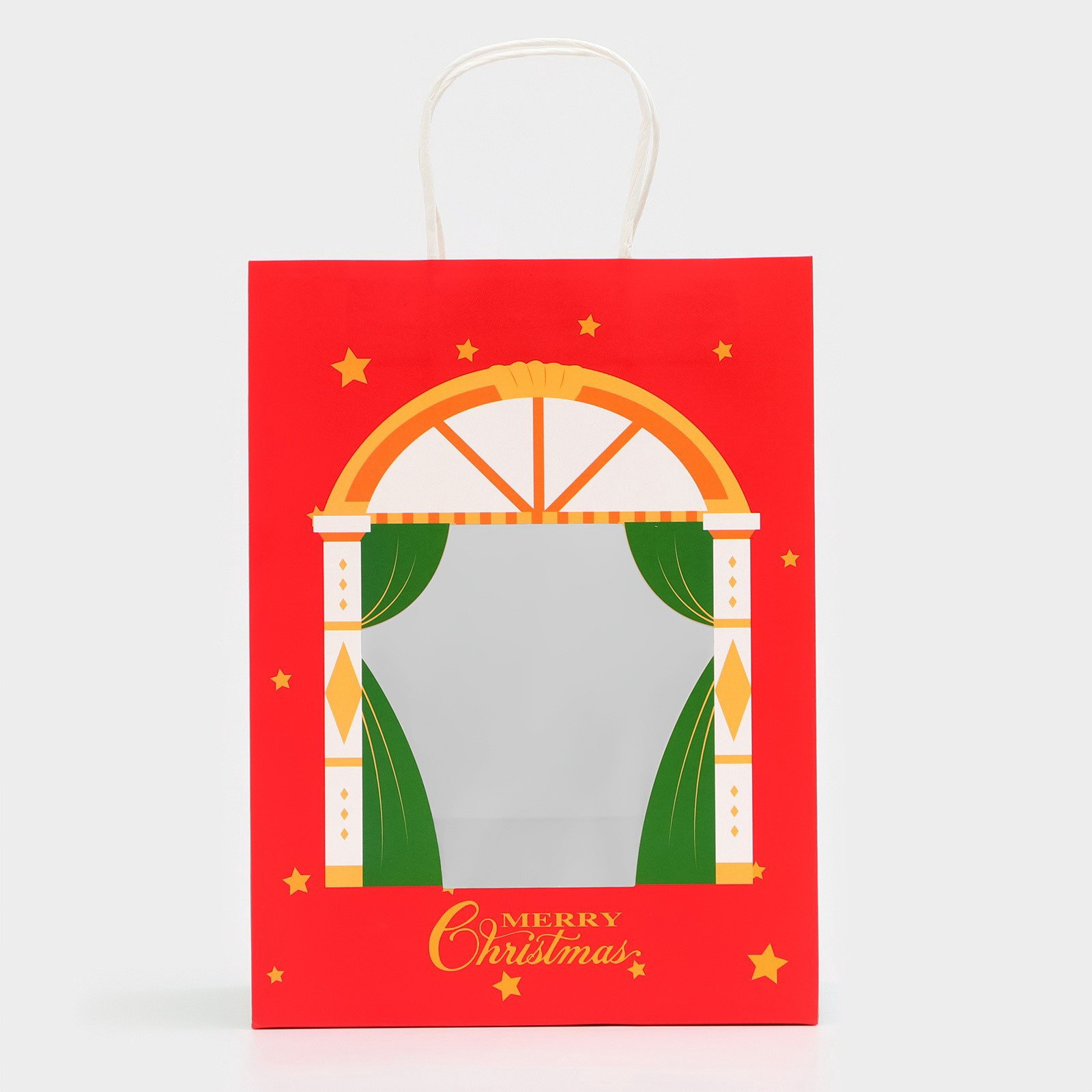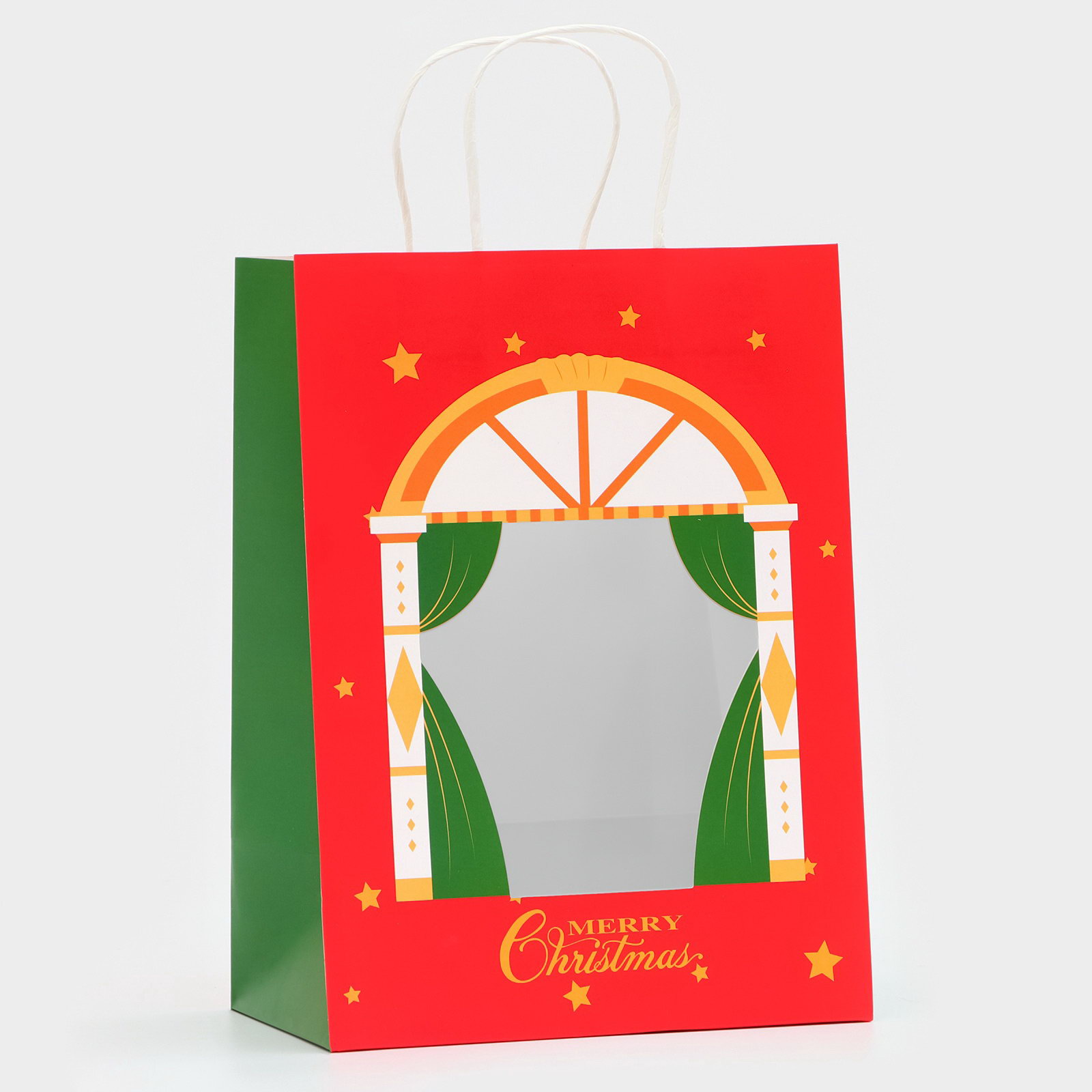 Пакет подарочный бумажный с окном "Театр" 30x22x14 см, крафт красный, UPAK LAND, Китай